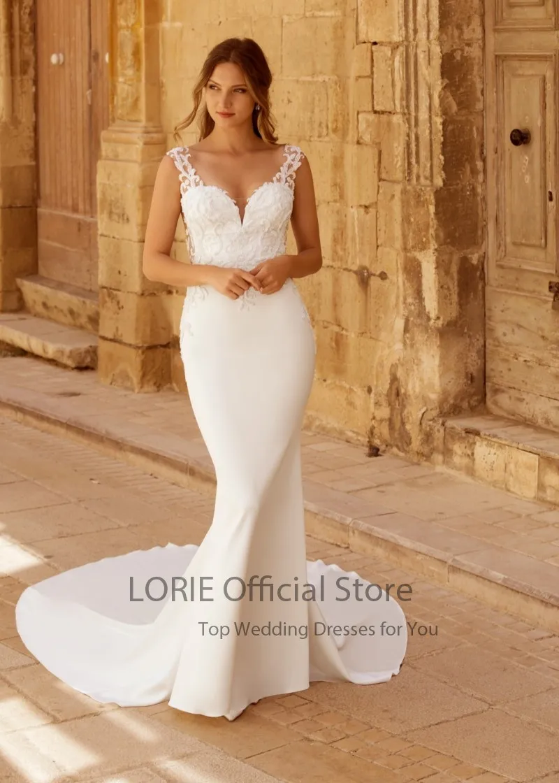 Платье свадебное с V-образным вырезом и юбкой-годе