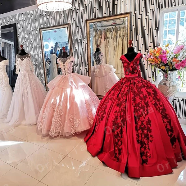 Красное платье Quinceanera с аппликацией, 15 лет, 2021