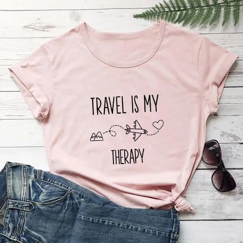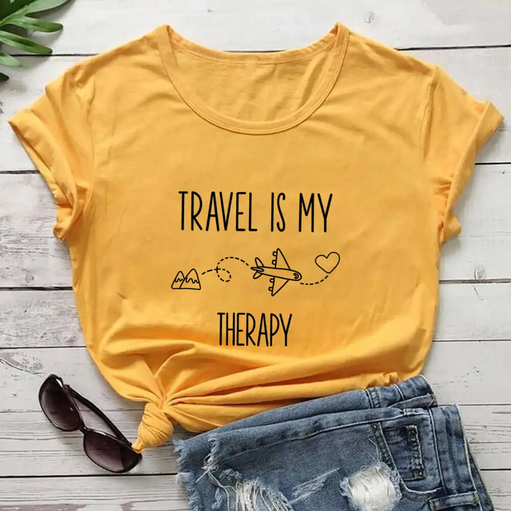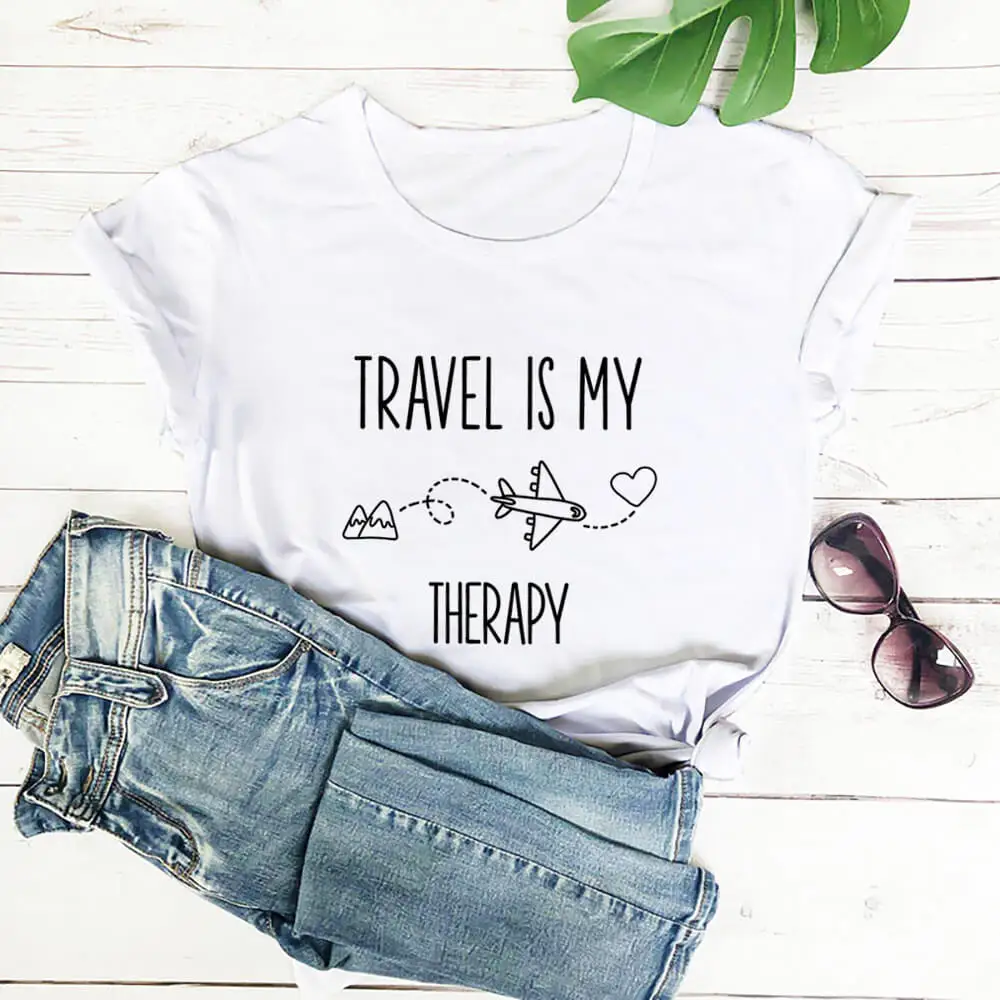 Женская футболка с принтом из 100% хлопка, с принтом путешествия-моя терапия