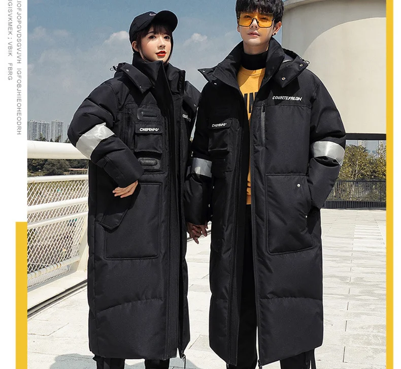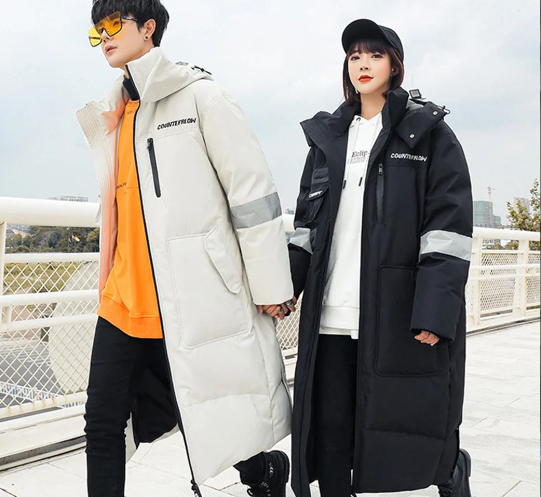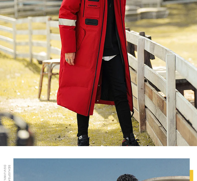 Мужская длинная куртка на утином пуху, теплая парка с капюшоном, По...