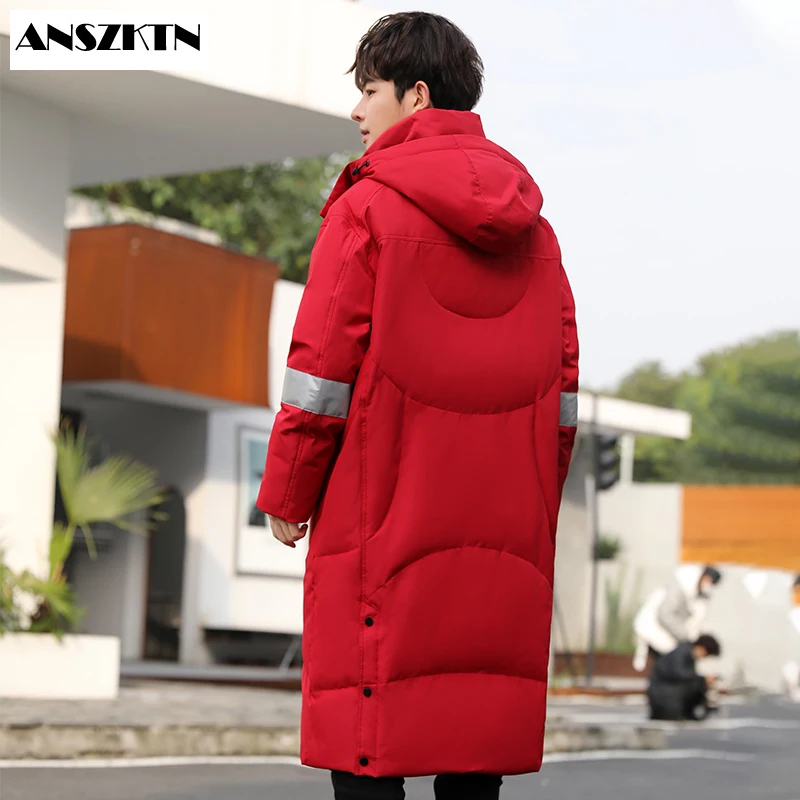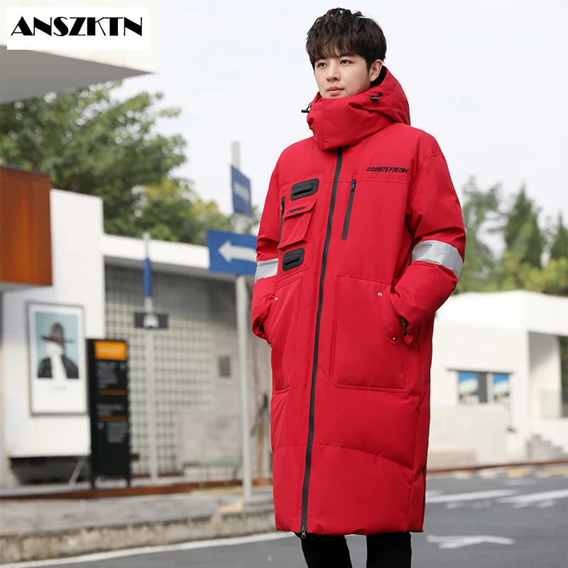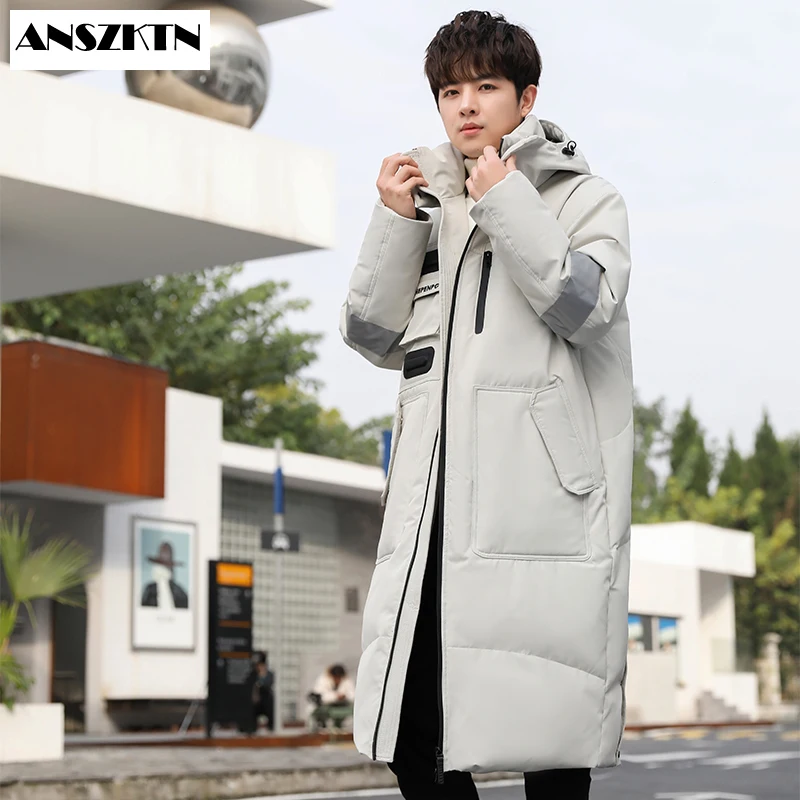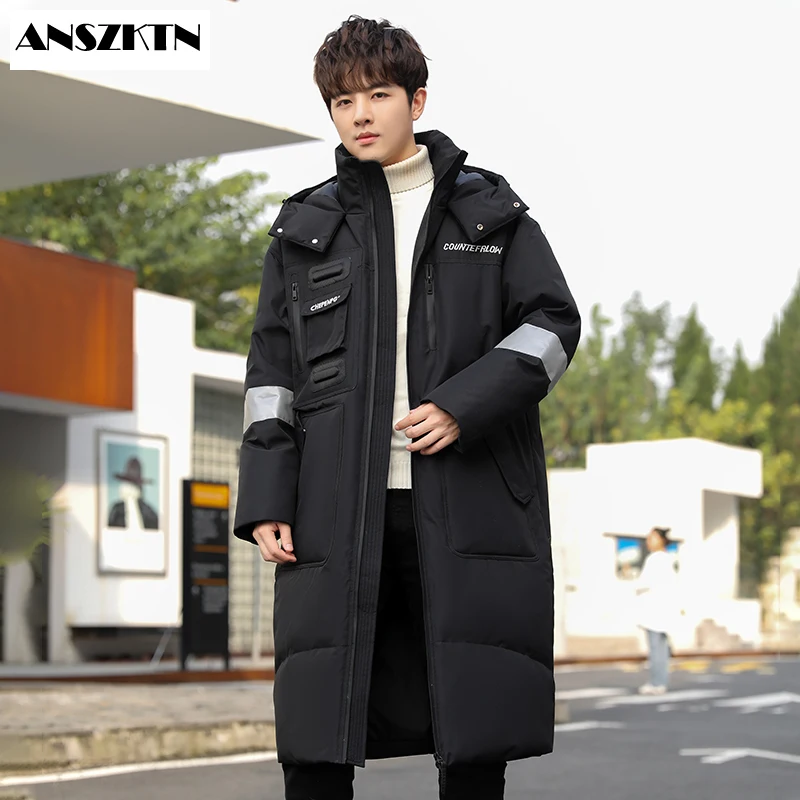 Новинка 2021, Высококачественная Толстая теплая зимняя куртка ANSZKTN, толстая парка на утином пуху с капюшоном, повседневное тонкое Мужское пальто