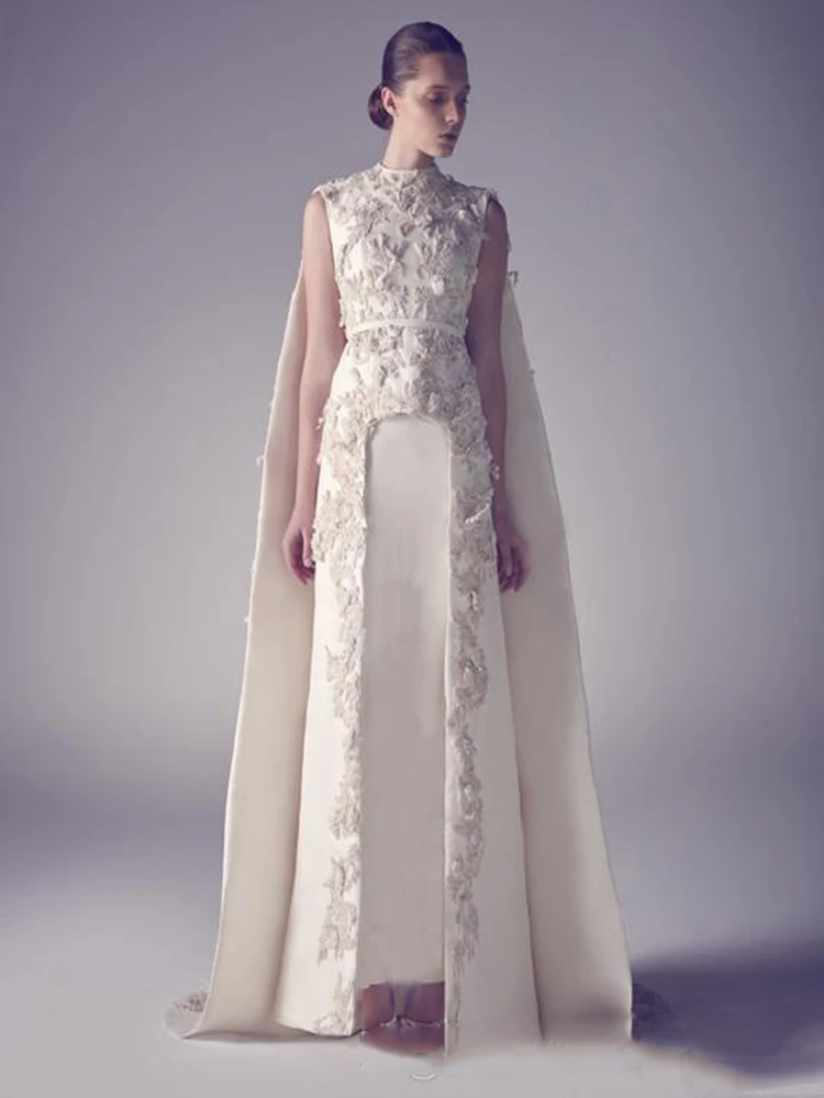 Арабское вечернее платье, с высоким воротом, с аппликацией, с разрезом спереди