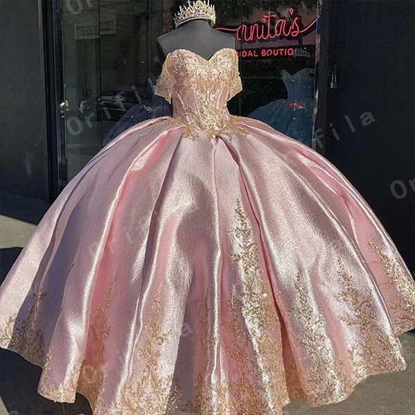 Розовое Золотое блестящее бальное платье, платья для Quinceanera со...