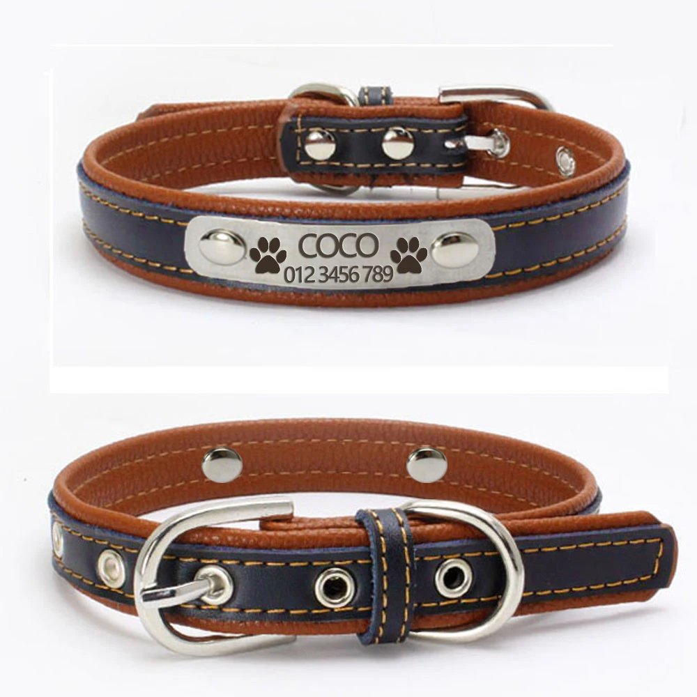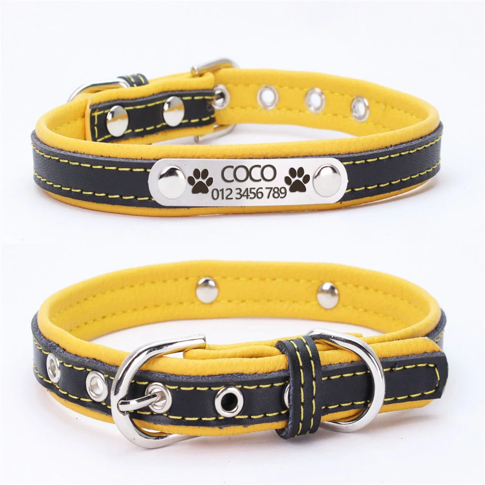 Персонализированные Бирки удостоверения личности Регулируемый ошейник Бесплатная гравировка пользовательское имя щенок шейный ремень с пряжкой кошка Лабрадор из натуральной кожи