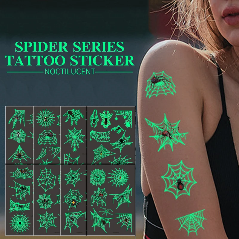 Татуировки Временные женские, паук, паутина, татуировки для детей, переводная бумага, милая дешевая вещь, светящиеся сказочные ручные светящиеся наклейки