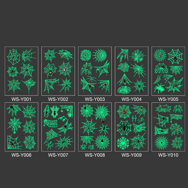 Светящиеся наклейки для татуировок на Хэллоуин, s-образный паук, св...