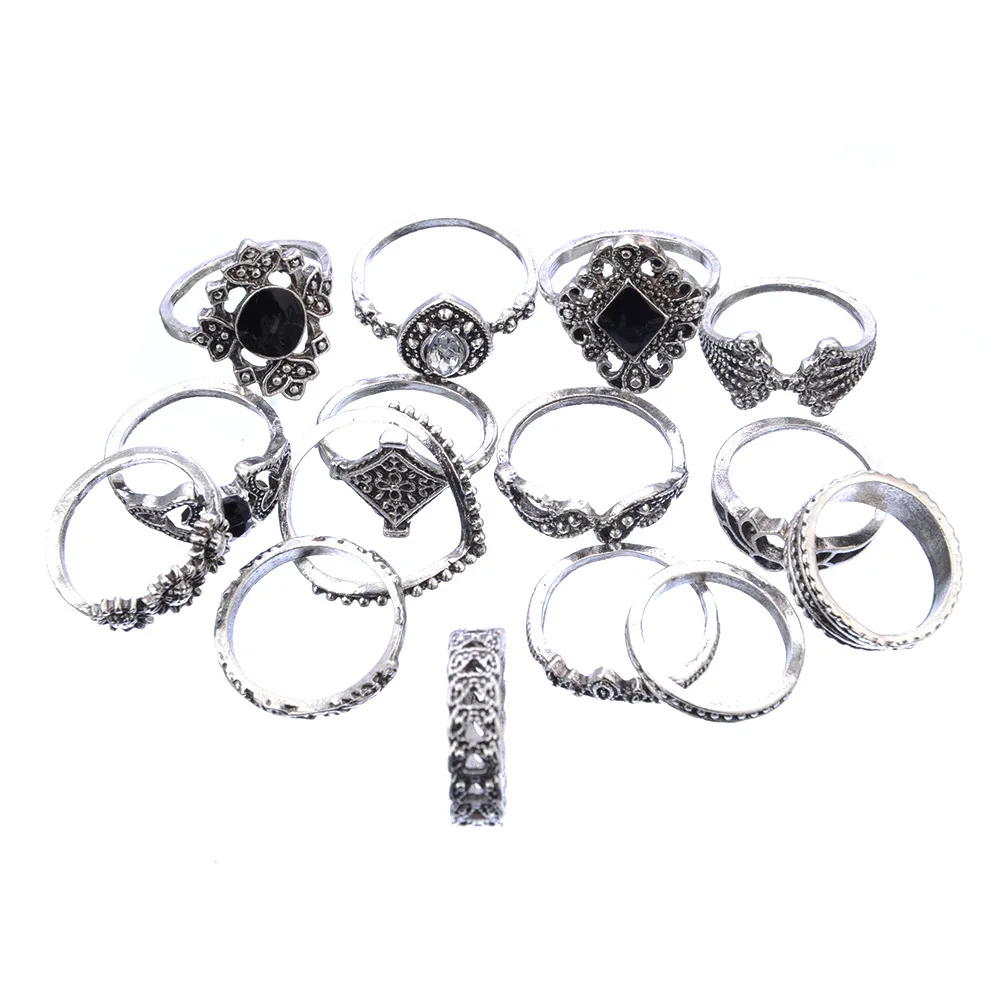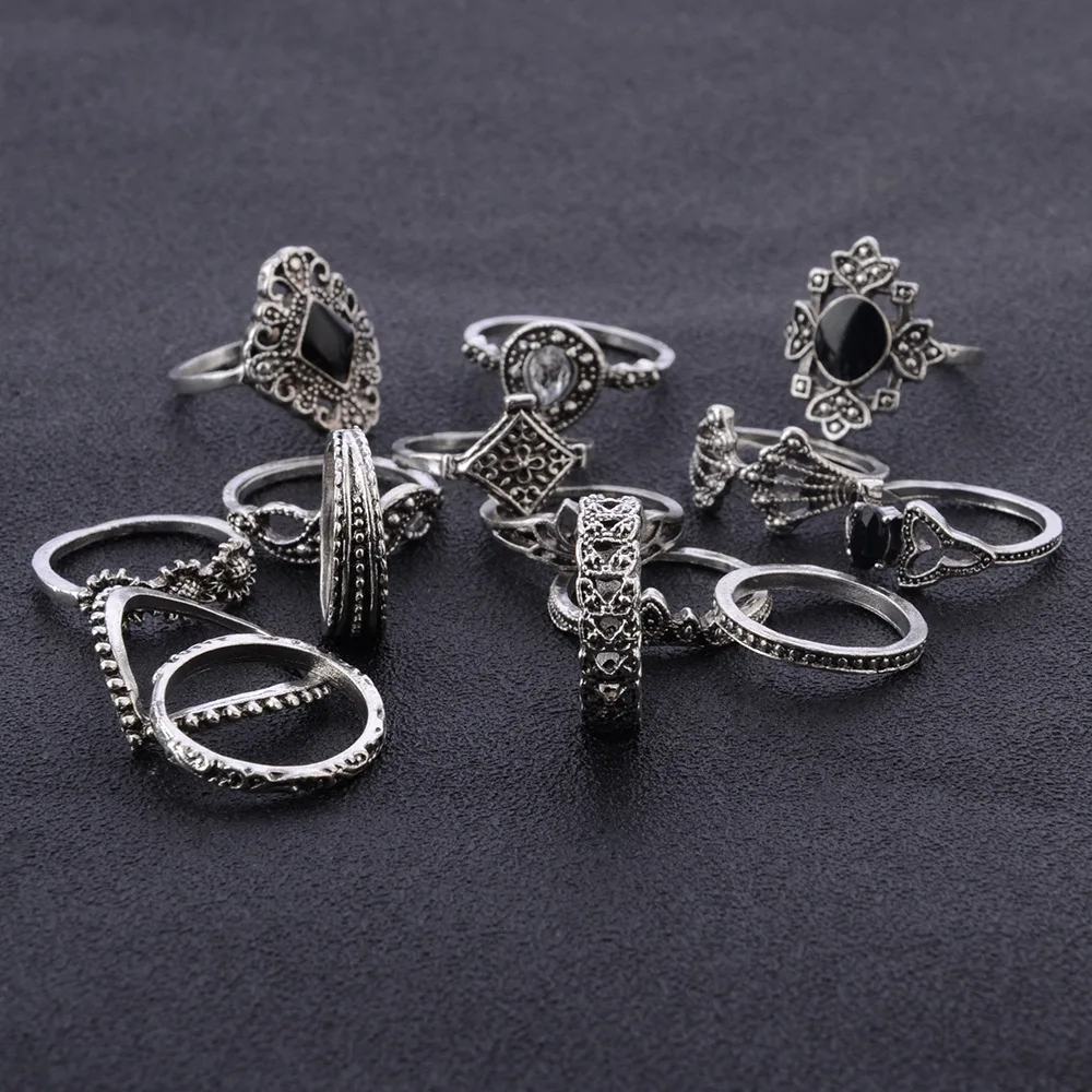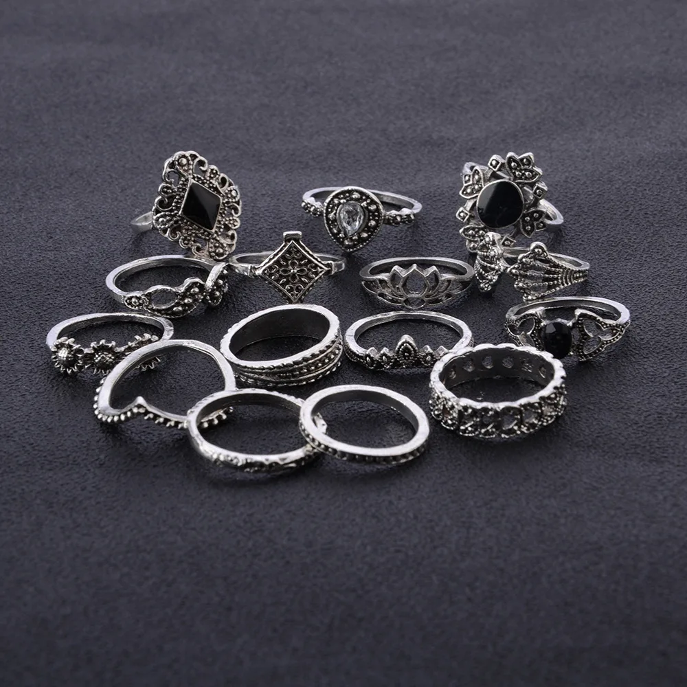 Комплект колец для женщин 15 шт.компл., готические эстатические вин...