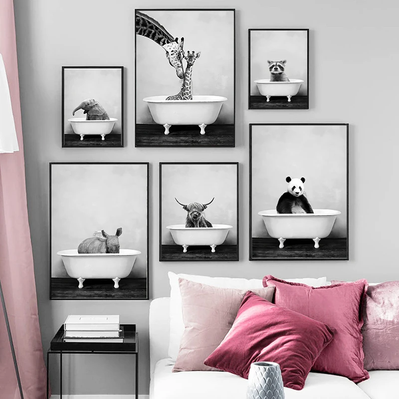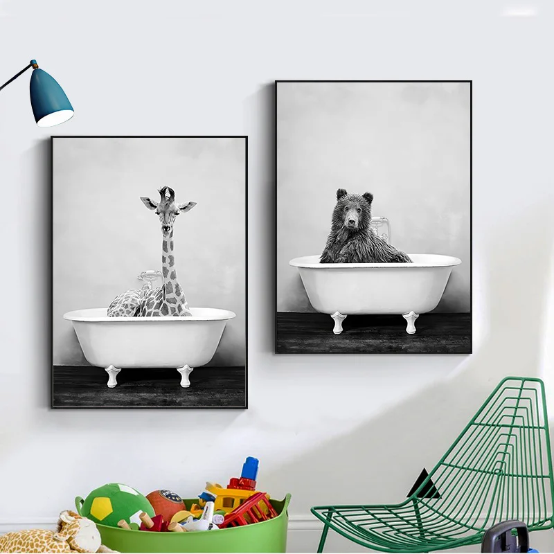 Скандинавский постер со стразами, енот, жираф, слон, печать животных, примите ванну для гостиной, домашний декор, настенное искусство, Картина на холсте