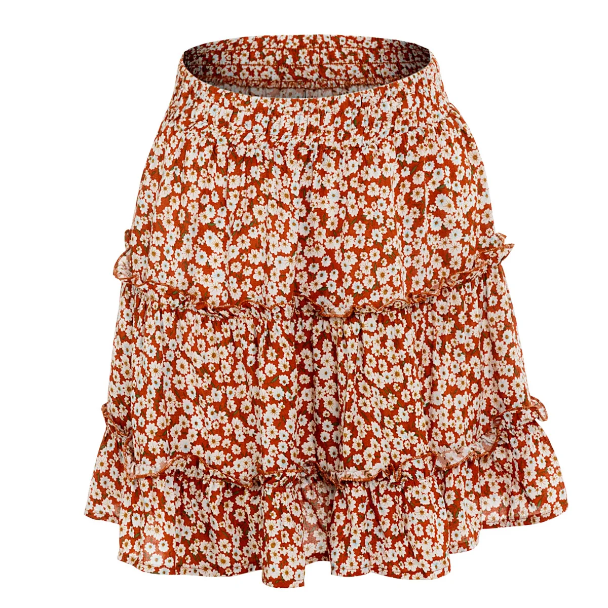 Женские юбки в стиле Харадзюку, летние пляжные трапециевидные юбки с высокой талией и цветочным принтом, модель WSL3636, 2021