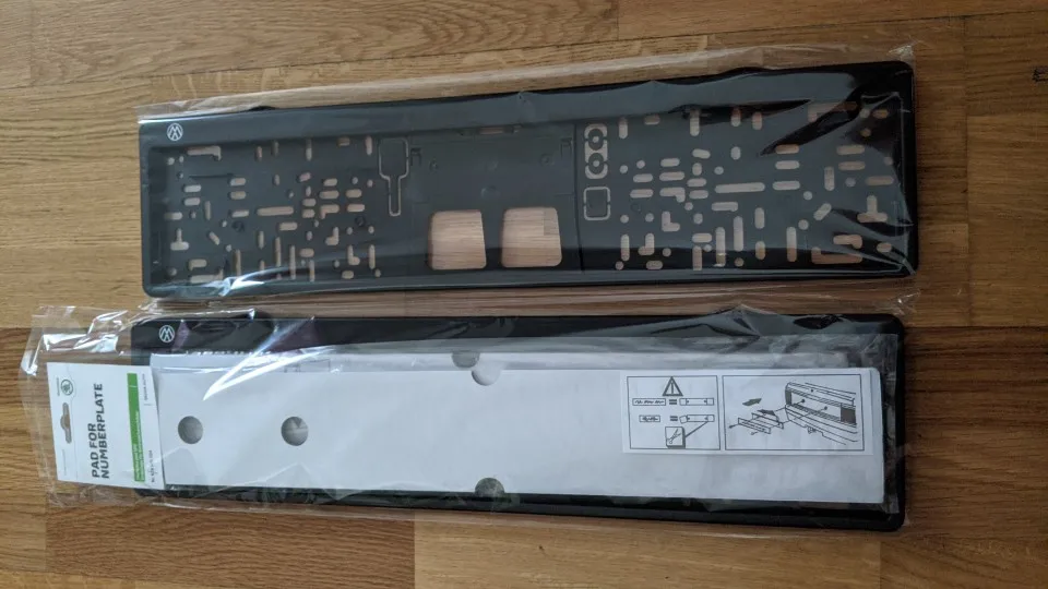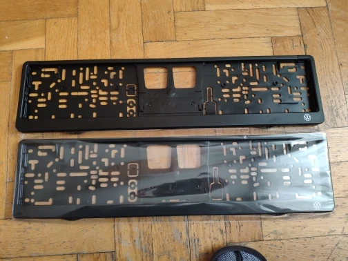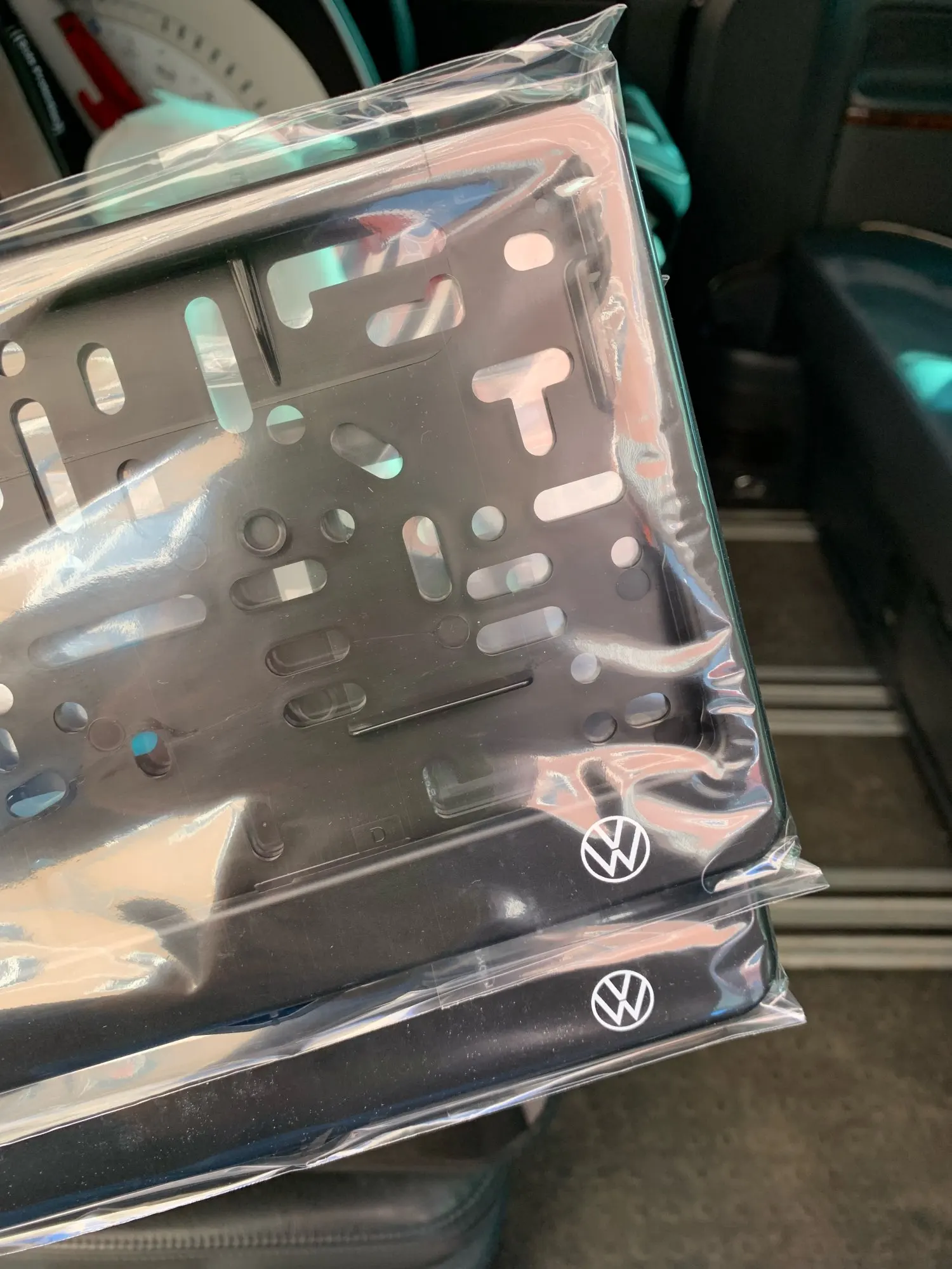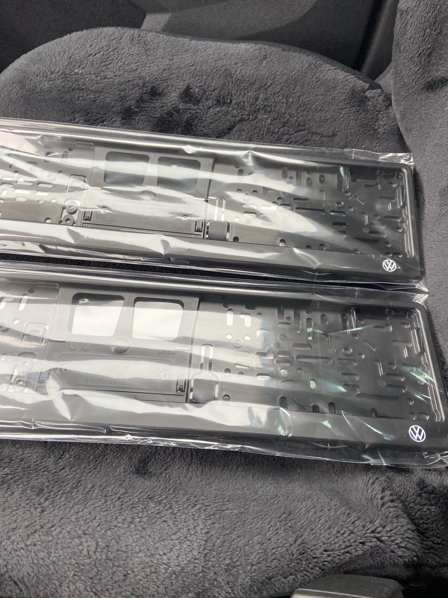 Не оригинальные это VW рамки. Простые пластиковые копии. Чуть лучше чем бесплатные с салона. Также дребезжит в них номер, поэтому проклеил двусторонним скотчем. Даже места под гайки в пластсмассе нет. Так себе.