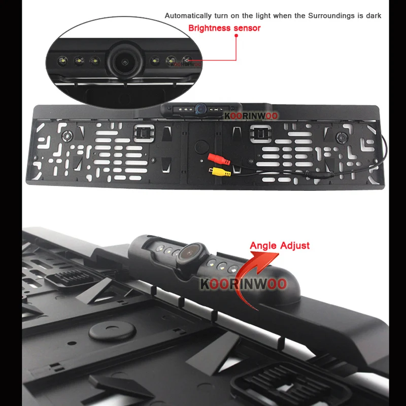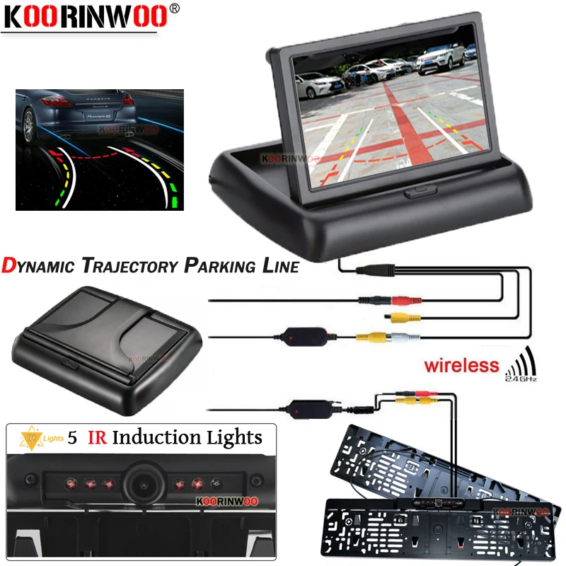 Koorinwoo Беспроводная рамка номерного знака Европейского автомобиля с динамической траекторией и камерой заднего вида
