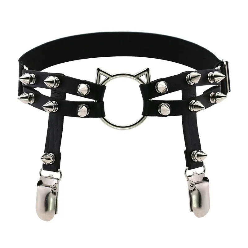 Пикантные Для женщин эластичные кожаные браслеты для ног Подвязки панк в форме сердца, с заклепками, сапоги до бедра Кольцо Панк гот, Харадзюку упряжь подвязки