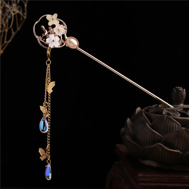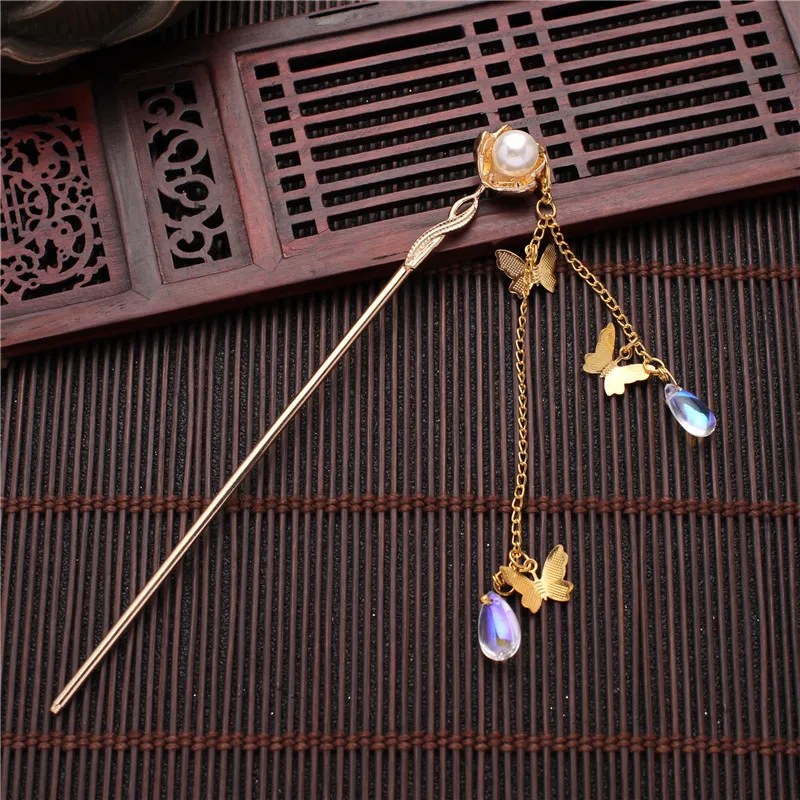 Женские заколки для волос, традиционные винтажные китайские заколки-бабочки с длинными кисточками, для укладки волос в стиле династии Хань