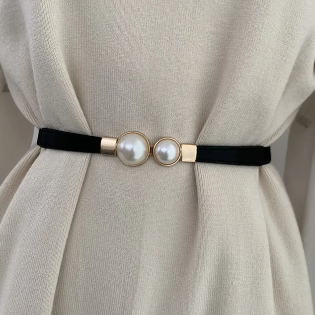 Ремень женский узкий эластичный, для свитера, платья, юбки, декоративные жемчужины