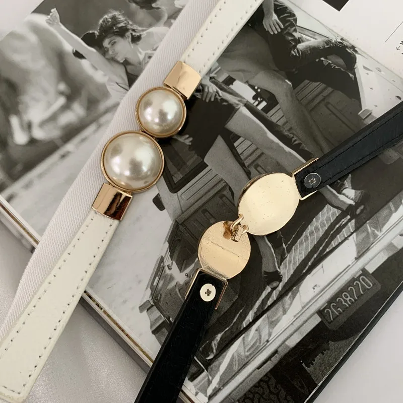 Ремень женский тонкий с имитацией жемчуга, Модный Эластичный пояс с...