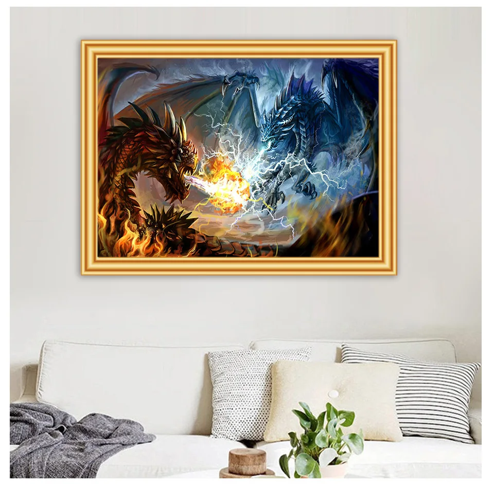 Алмазная 5D картина Огненный Дракон против молнии дракон, полноразмерная вышивка, мозаика, картина Стразы для декора