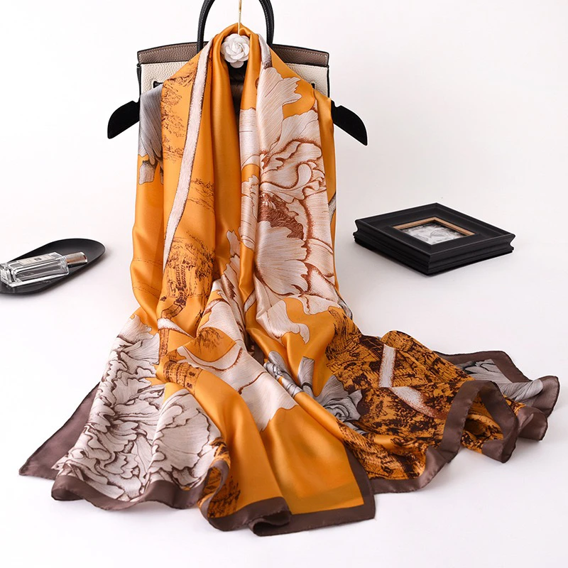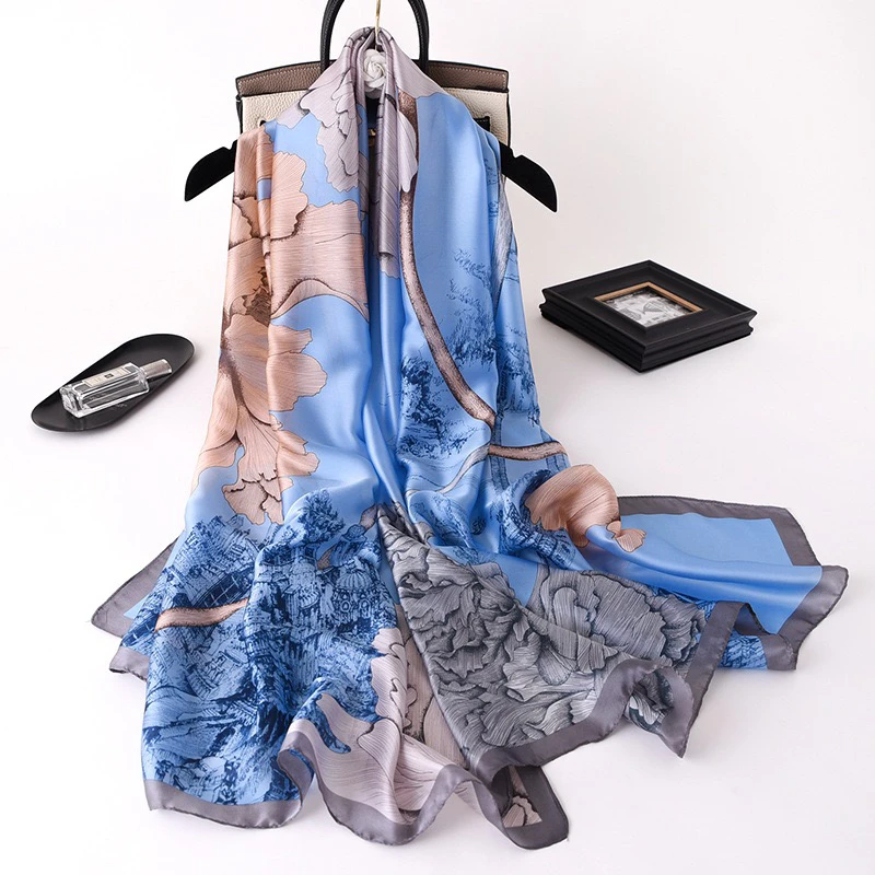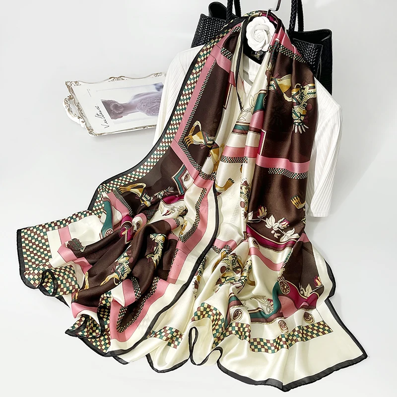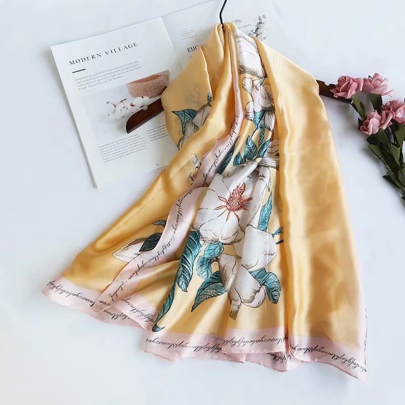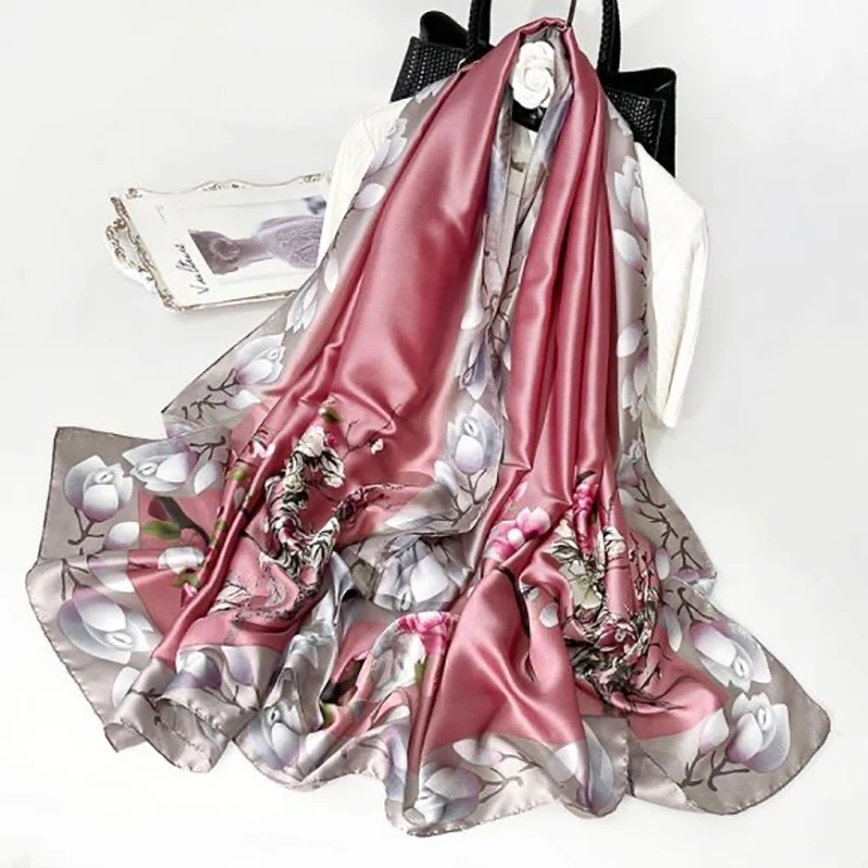 Платок женский Шелковый, с цветочным принтом, розовый, 2021