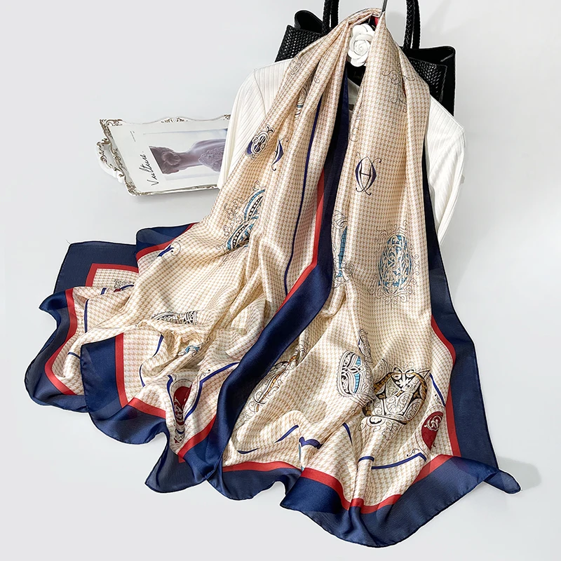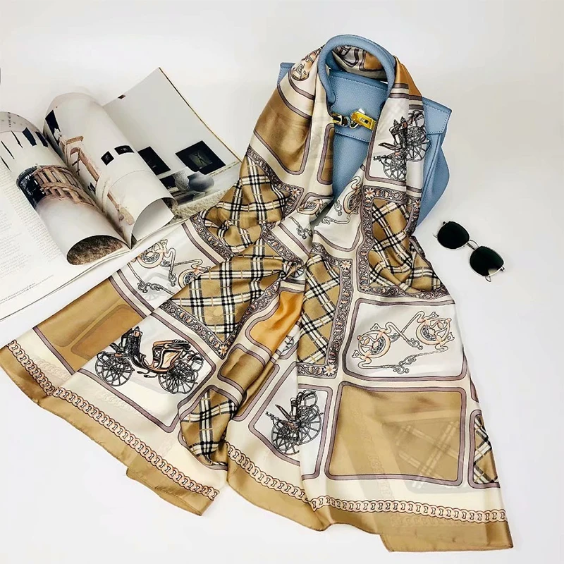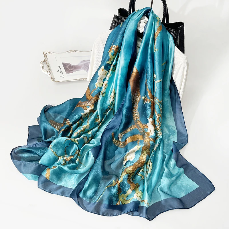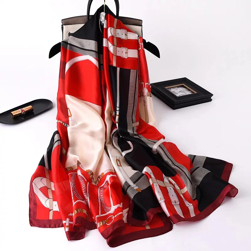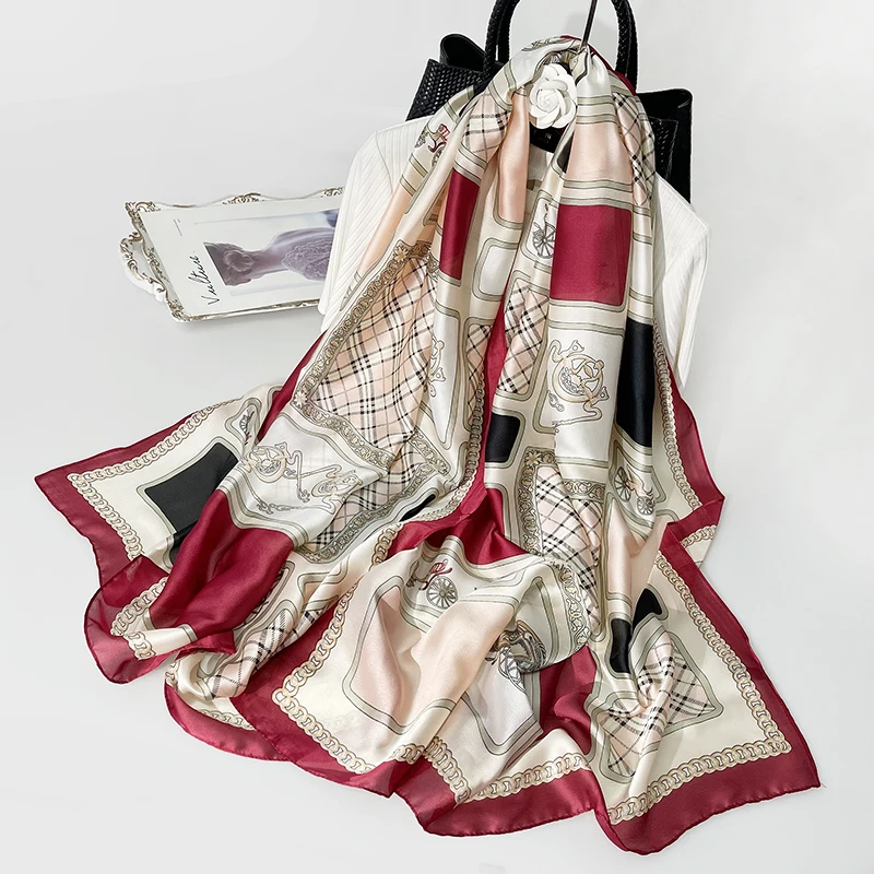 Платок женский Шелковый, с цветочным принтом, розовый, 2021