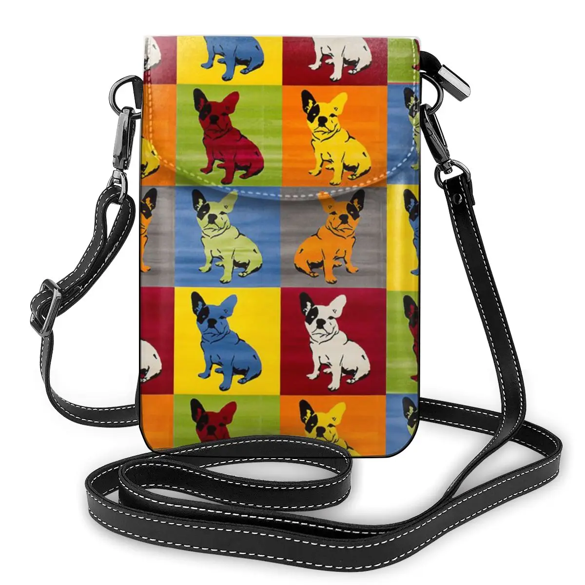 Наплечная мини-сумка с изображением французского бульдога, кожаная ...
