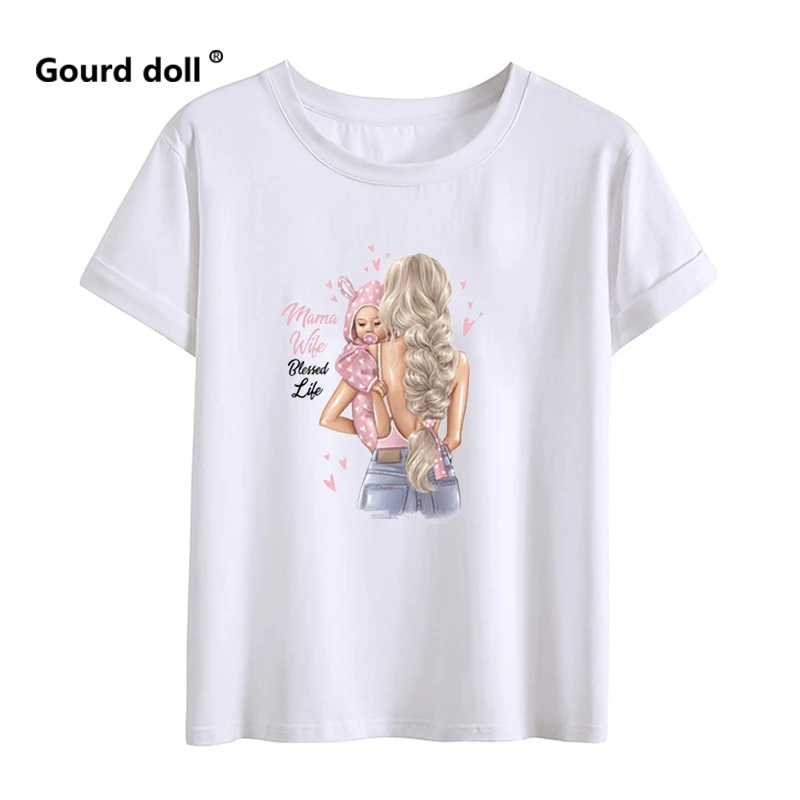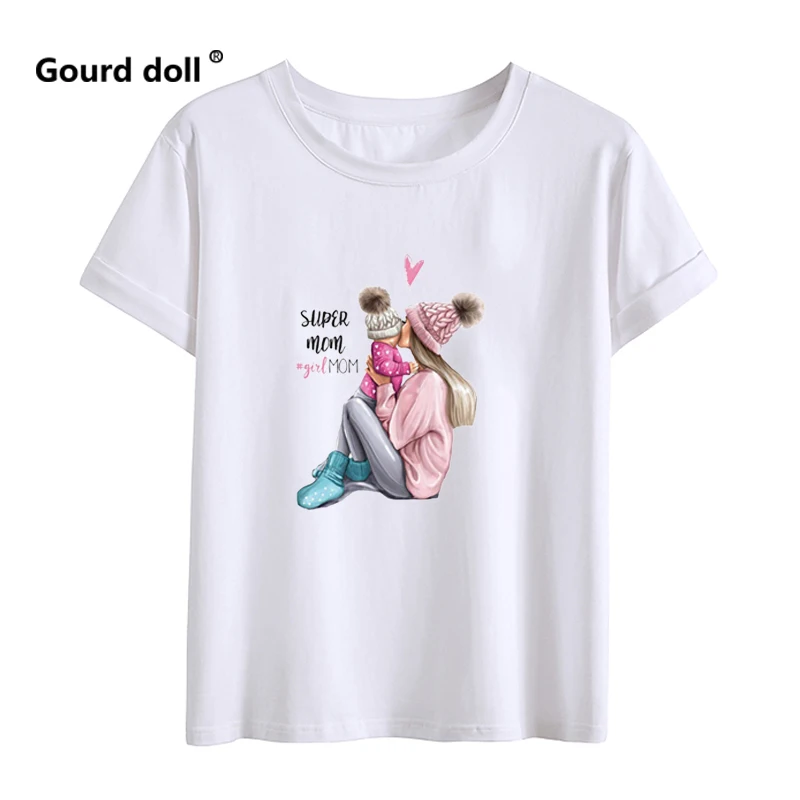 Футболка с принтом для мамы, дочки, сына, летняя, хлопковая