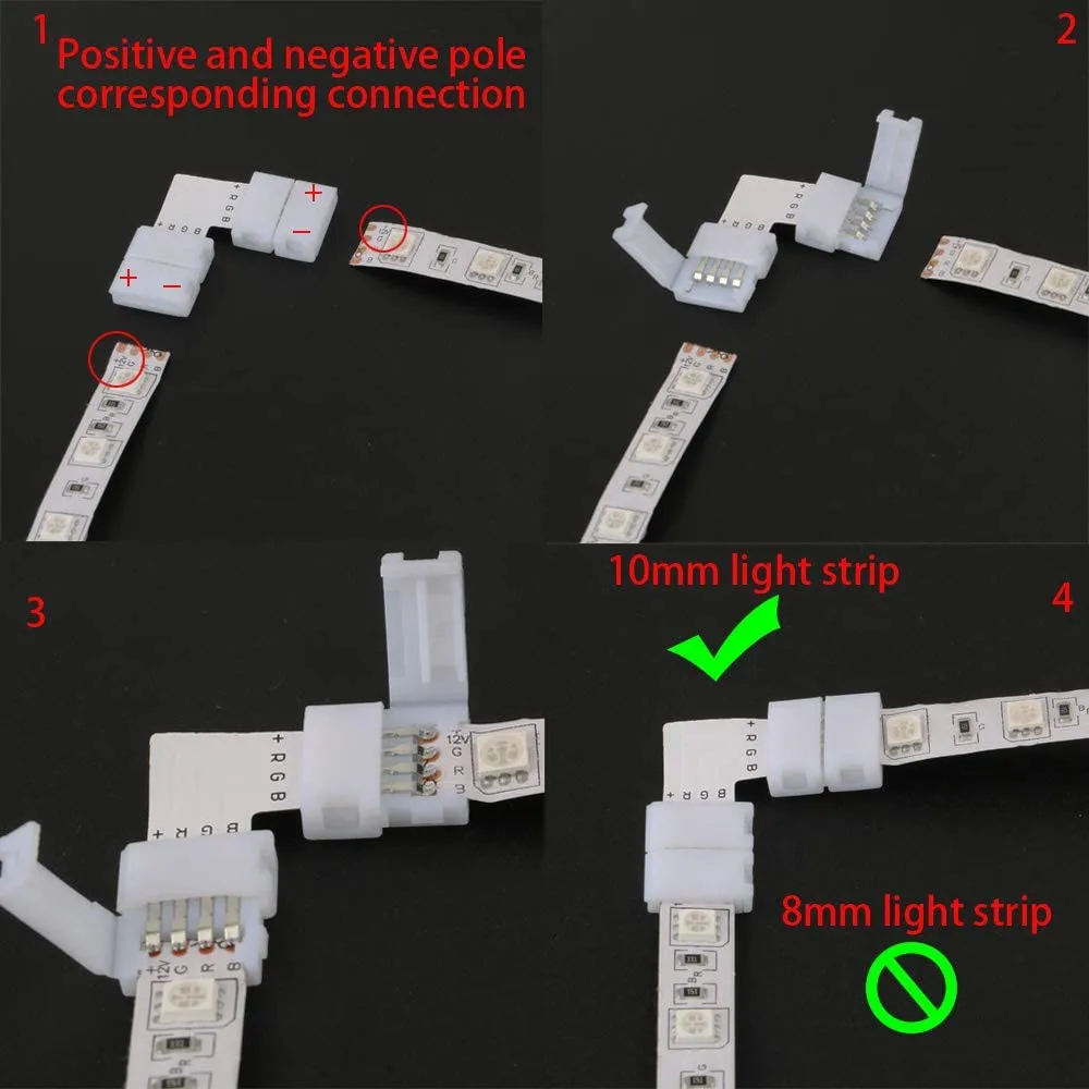 Номер модели10mm L Shape 4 Pins LED RGB Strip Connector