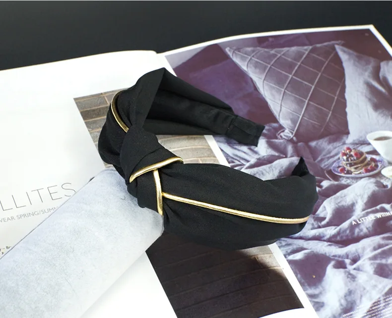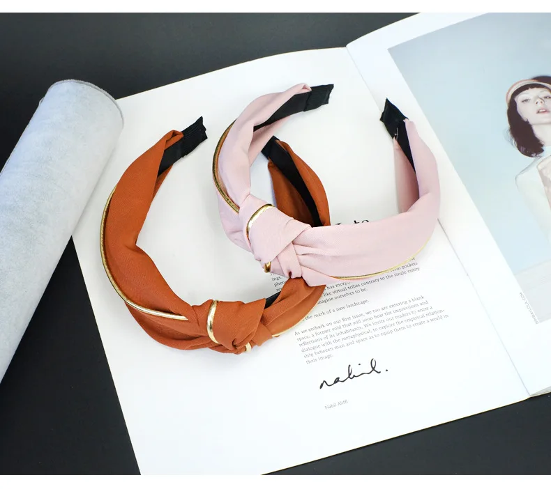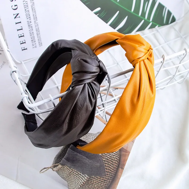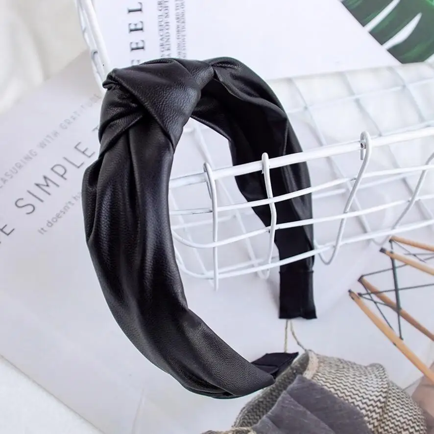 Ободок для волос FG065 Женский, модный однотонный обруч из искусственной кожи с узлом, аксессуар для волос