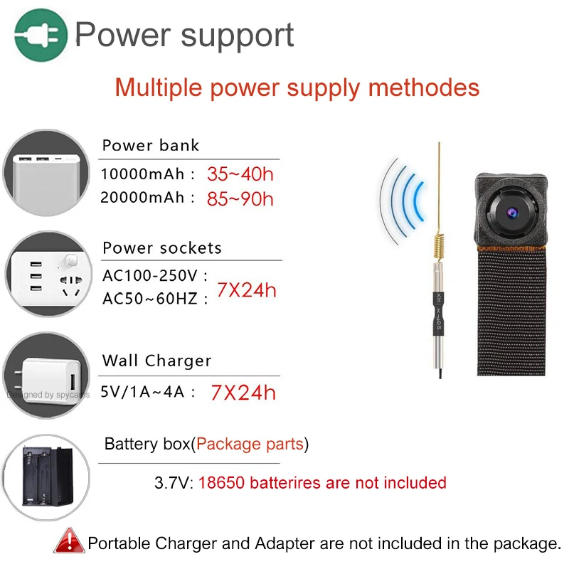 1 мини-камера с Wi-Fi 1 x батарейный отсек (аккумулятор 18650 в комплект не входит) 1 х кабель 1 х Руководство