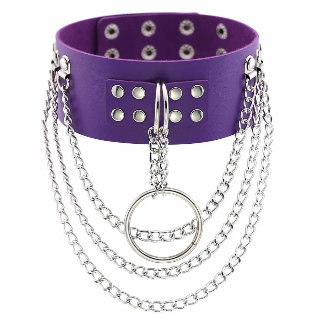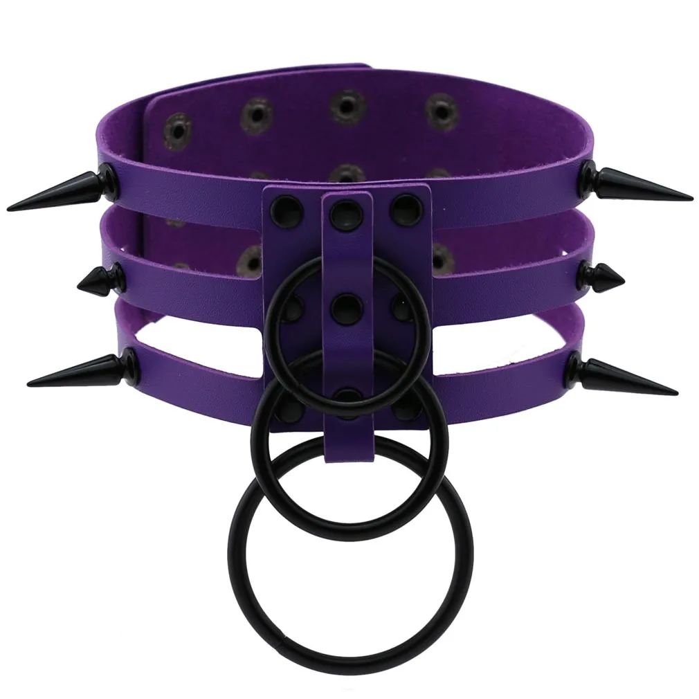 Женское Ожерелье из искусственной кожи в стиле панк, фиолетовое ожерелье из нержавеющей стали с удушением, ошейник с заклепками, бондаж, готическое украшение для шеи