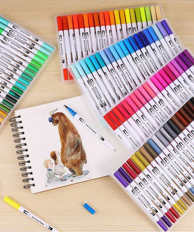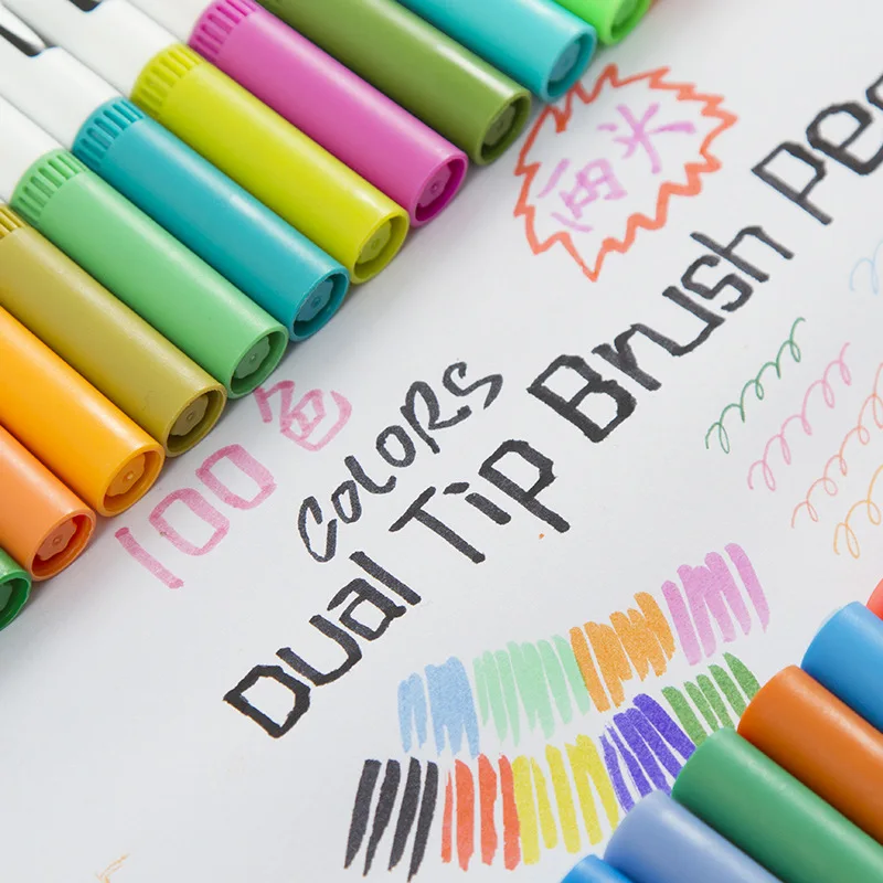 100 Цвета двойной кончик кисти маркеры арт акварельные тонко пишущи...