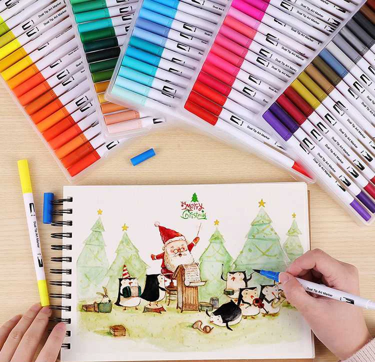 120 цветов двойной наконечник кисти Акварельные ручки художественные маркеры двойная головка тонкой подводки набросок рисунок каллиграфия Аниме Дизайн