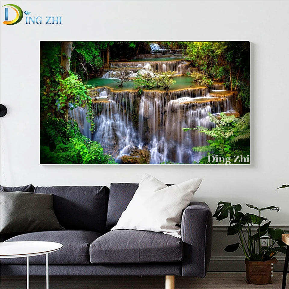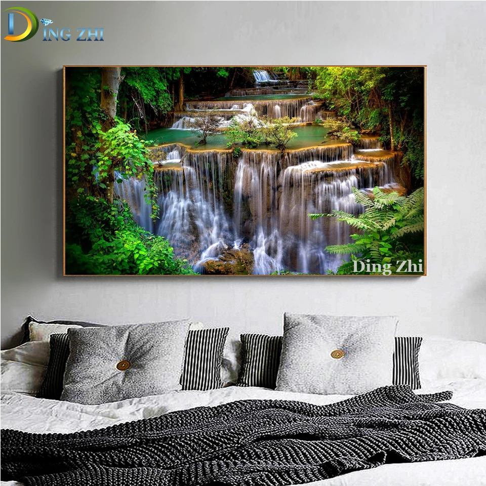 Diy 5D алмазная картина лес водопад полный квадрат/круглая дрель мозаика Пейзаж Вышивка крестом Стразы домашний декор
