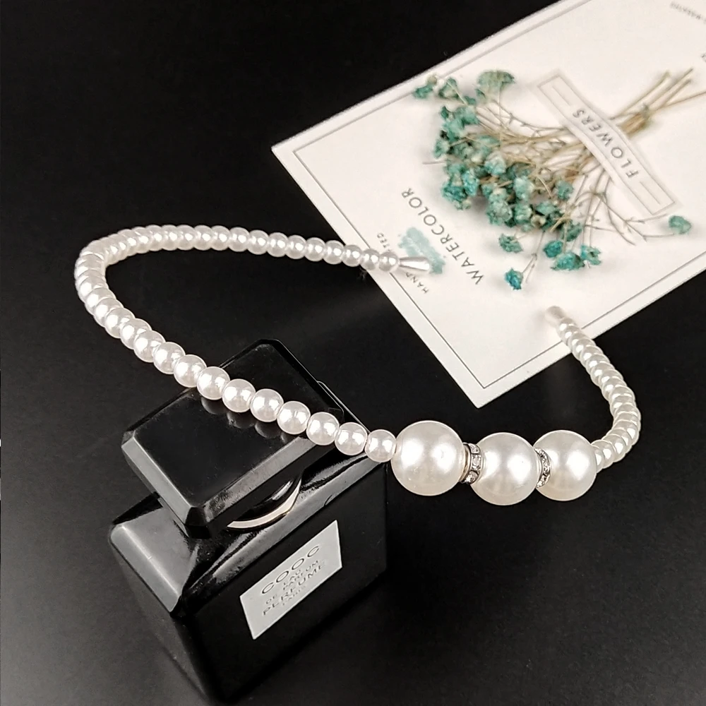 Повязка на голову женская, большая, жемчужный обруч для волос, FG073