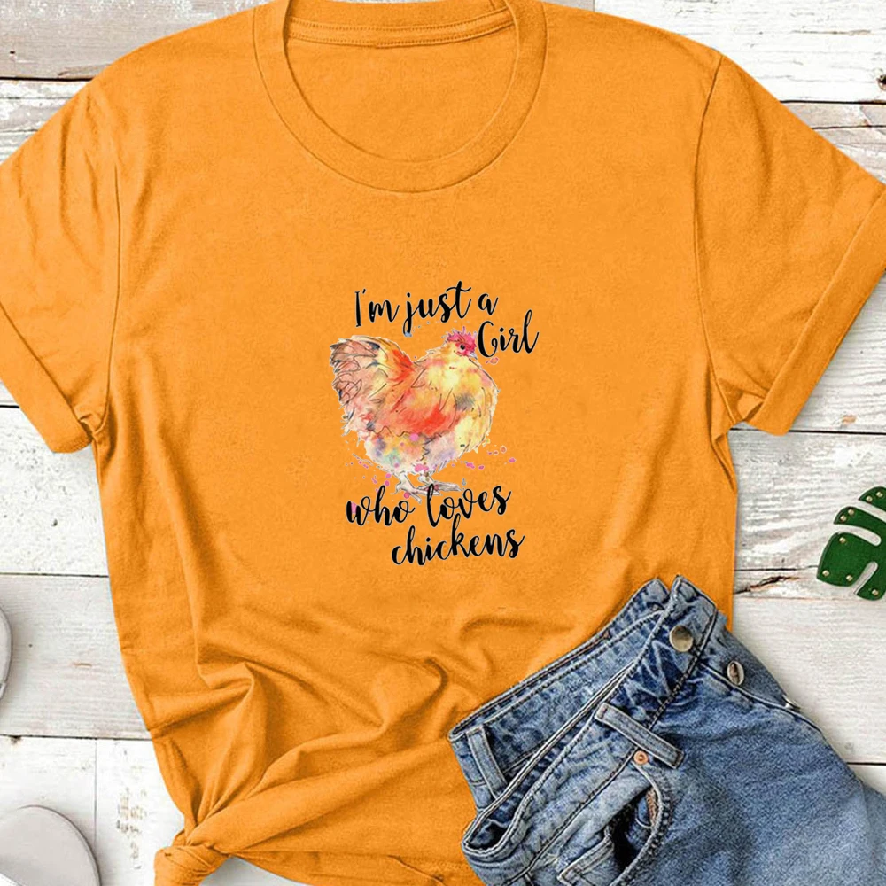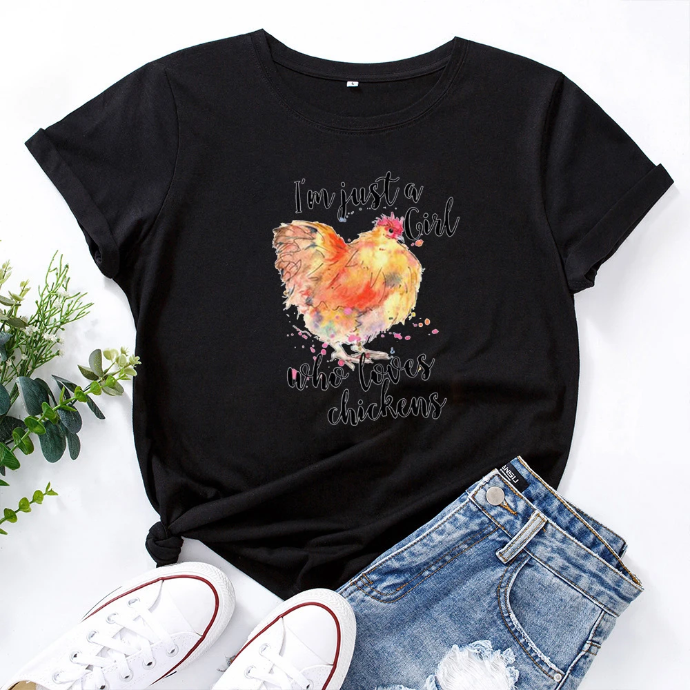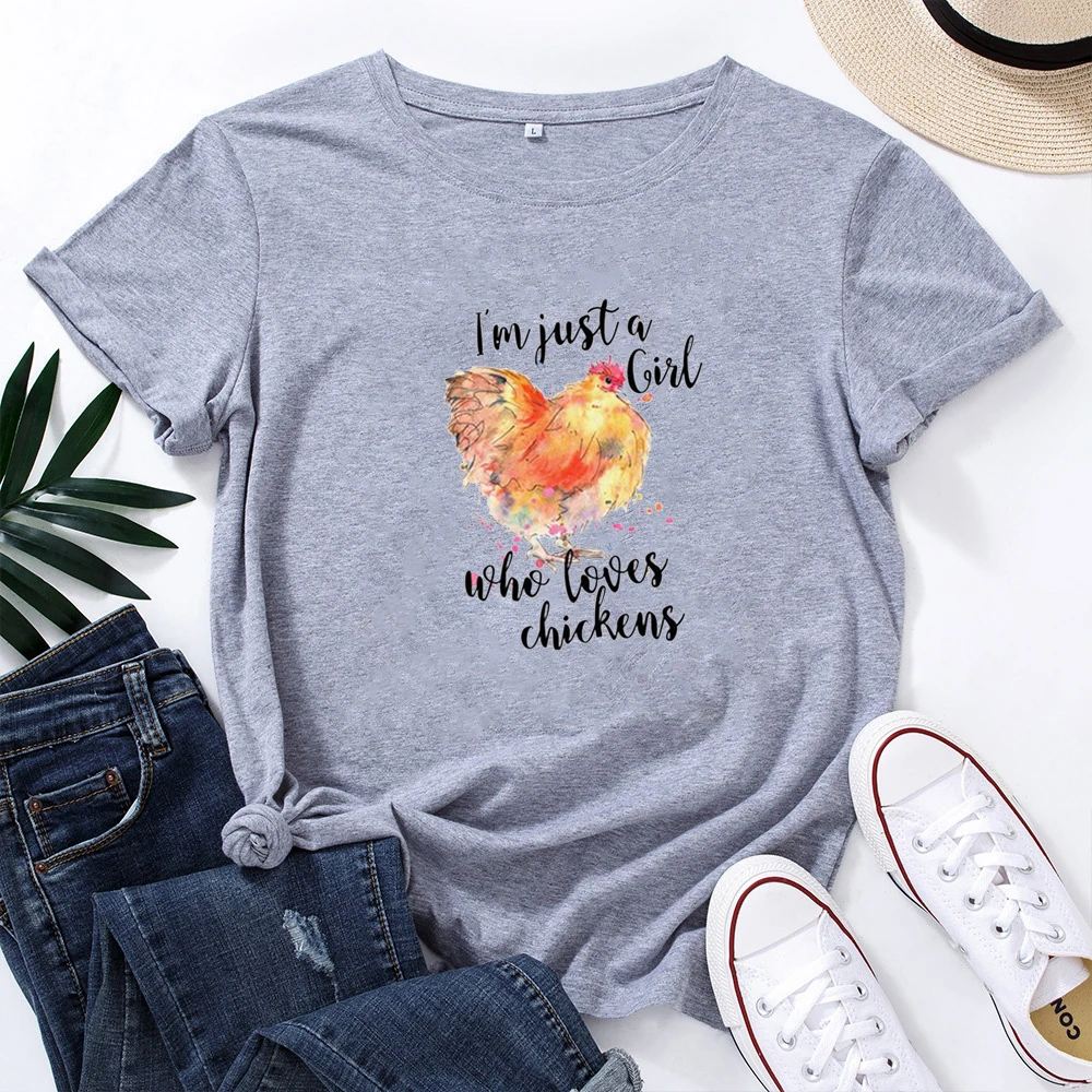Женская хлопковая Футболка с принтом I'm Just A Girl Who Loves Chicken, Повседневная футболка, женская уличная одежда