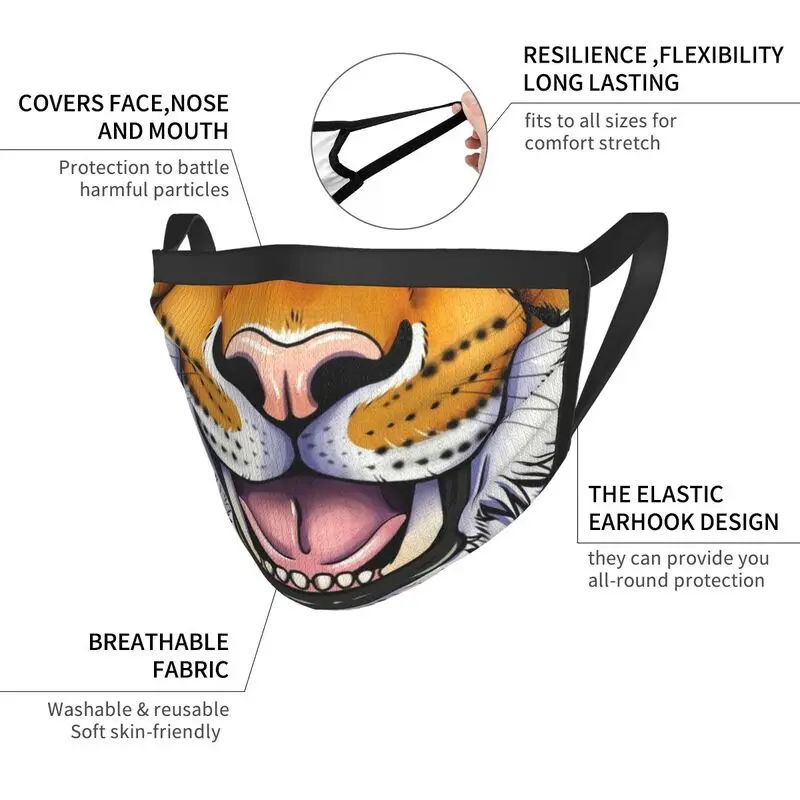 Тигр улыбка лицо маска для взрослых, унисекс, в виде Анти-пыль ужас маска животного Защитная крышка респиратор многоразовый рот муфельная печь