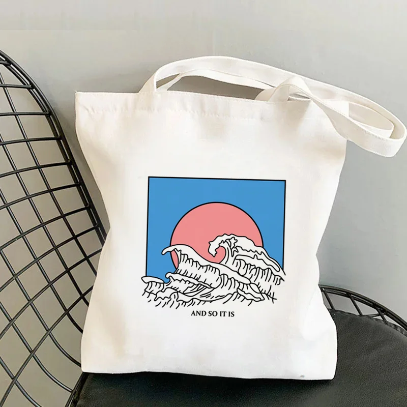 Сумка для покупок Great Wave, многоразовая сумка из джута, сумка из переработанной ткани
