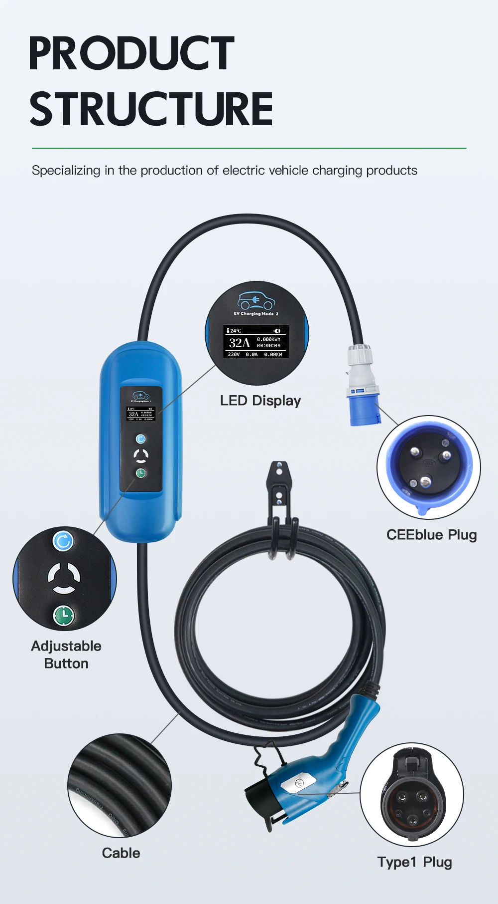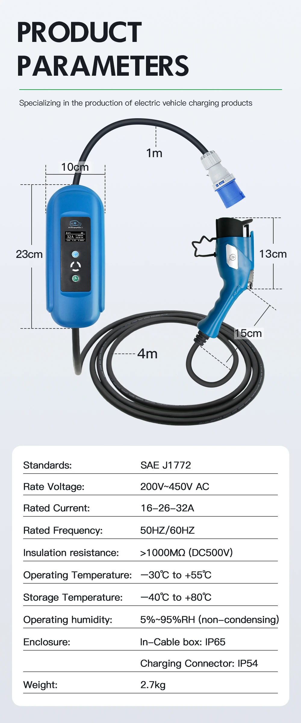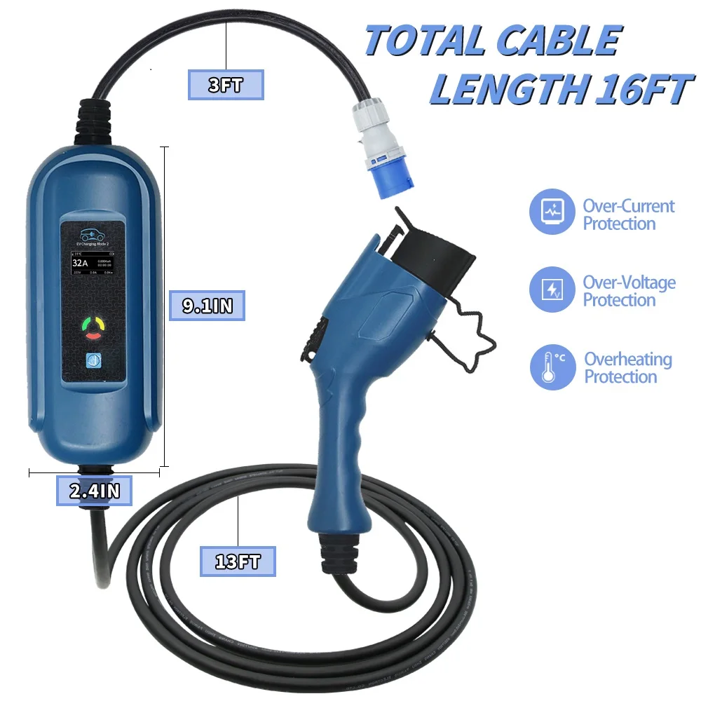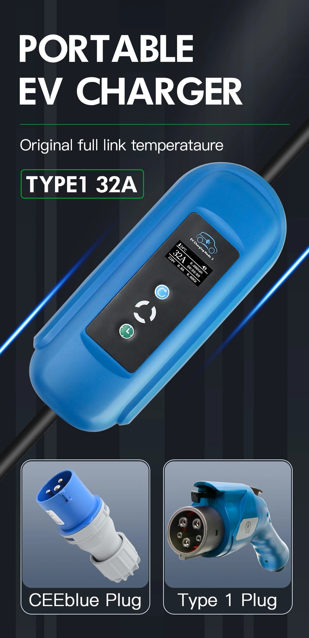 Зарядное устройство Level2 для электромобилей, 32 А, 5 м, кабель SAE J1772 Type 1, портативное зарядное устройство для электромобилей Leaf Tesla