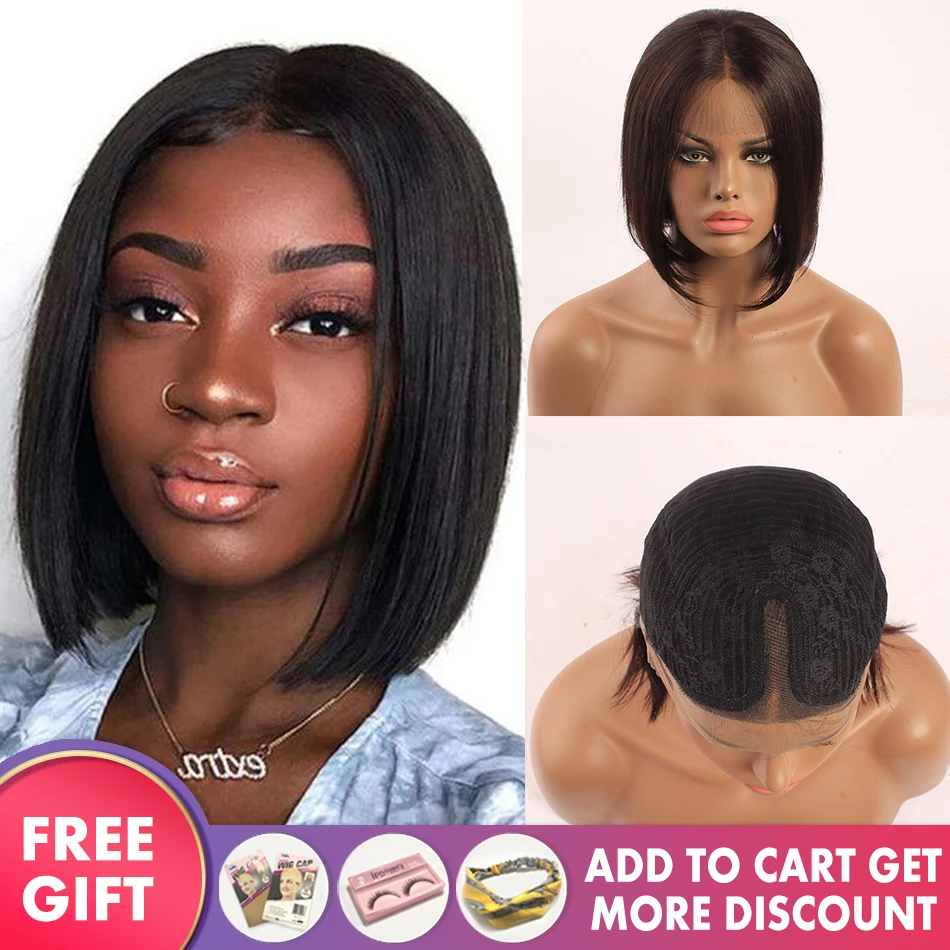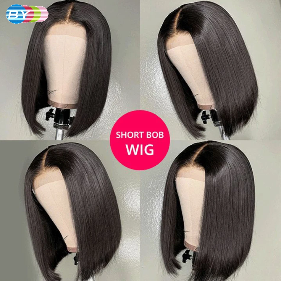 Парик на сетке 13x1 часть парик T часть на сетке прямые парики боб короткие бразильские парики из человеческих волос предварительно выщипанные короткие части на сетке Remy 180% Плотность