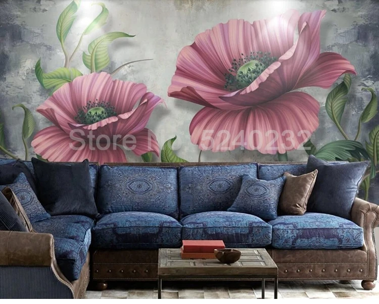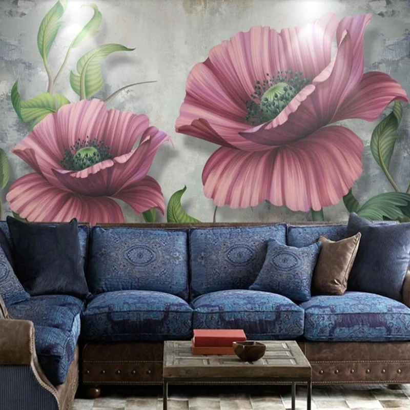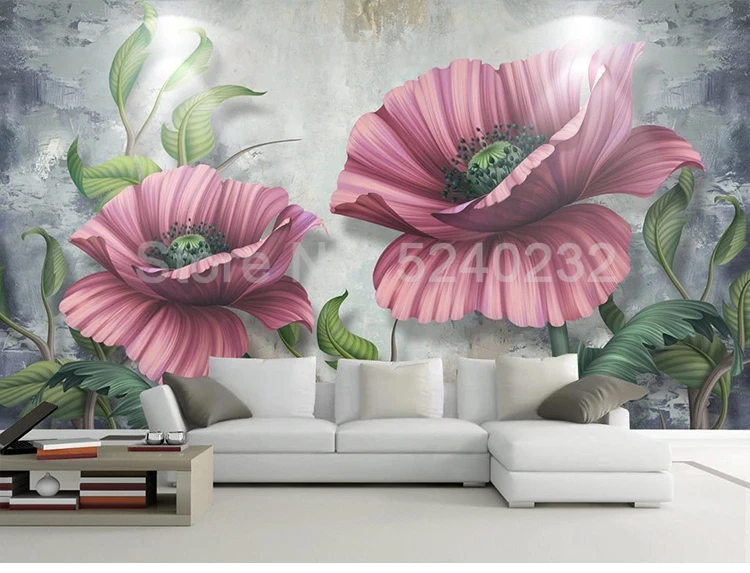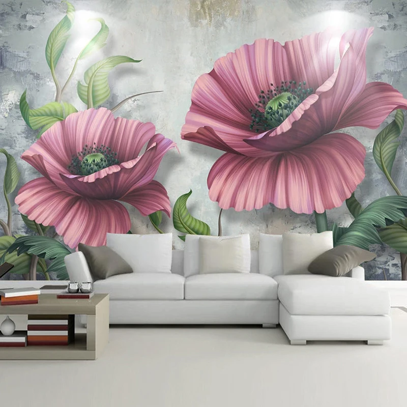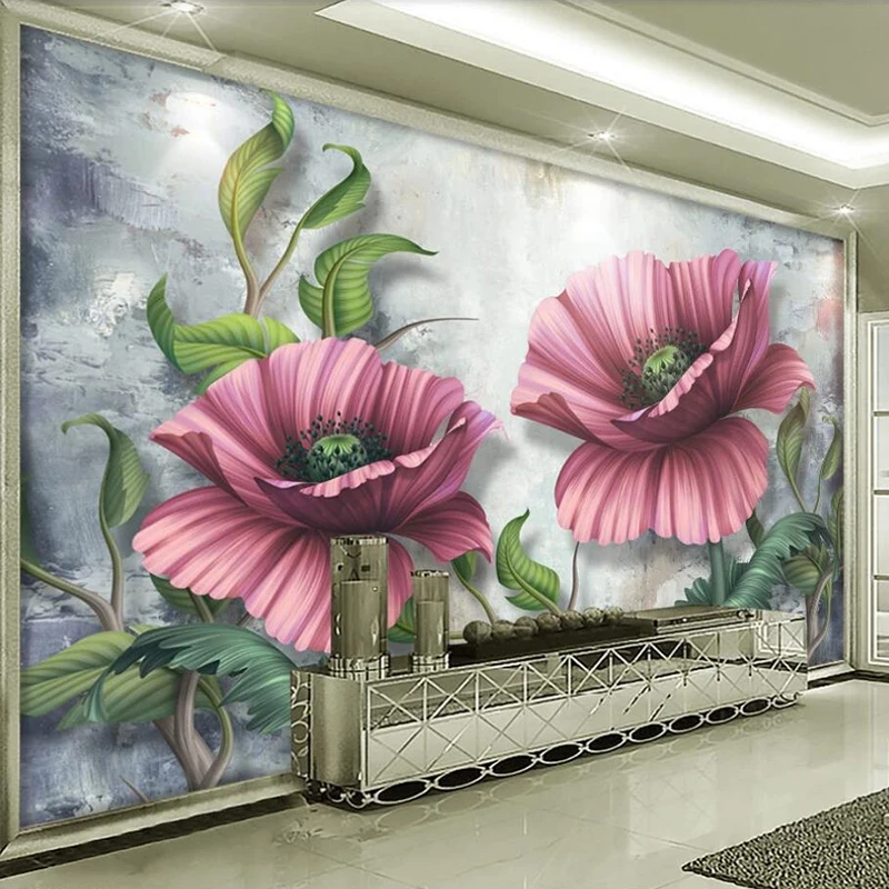 Пользовательские фотообои красный цветок зеленый лист 3D спальня гостиная диван фон украшение стены живопись обои современный цветочный