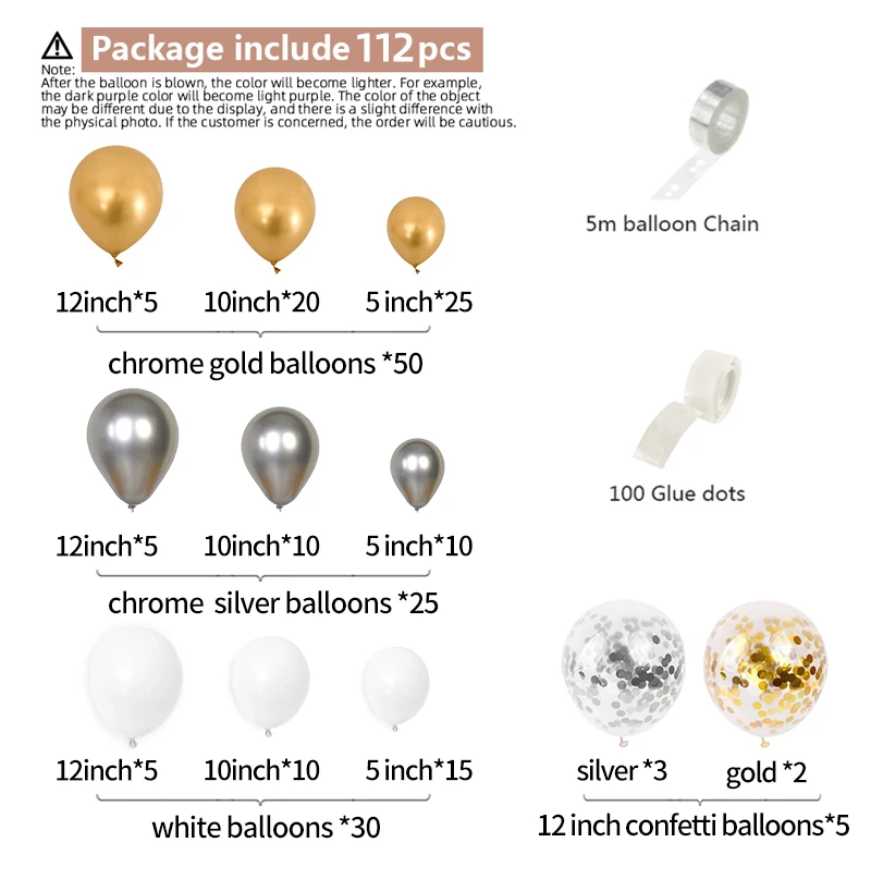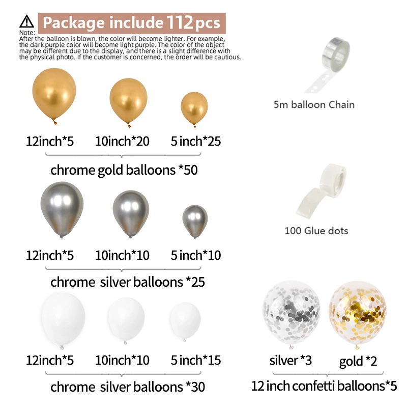 112 шт., воздушные шары-гирлянды арочный комплект, хромированные, серебристые, золотые шары с конфетти, украшение для свадьбы, дня рождения, вечеринки, шары для малышей