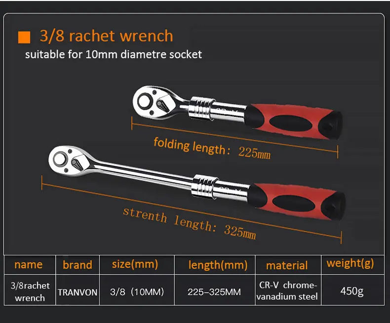 Ключ с храповым механизмом 38 дюйма, хромированная сталь, 72 зубца, телескопический торцевой ключ с храповым механизмом