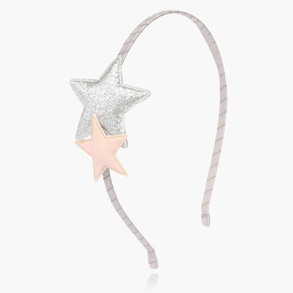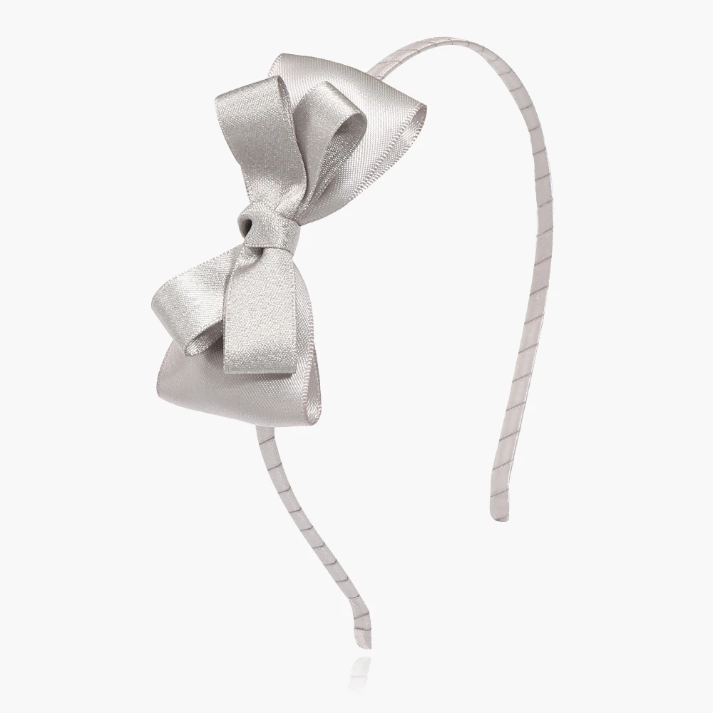 Ободок для волос с атласной лентой, металлический, серебристый, розовый, 1 шт.