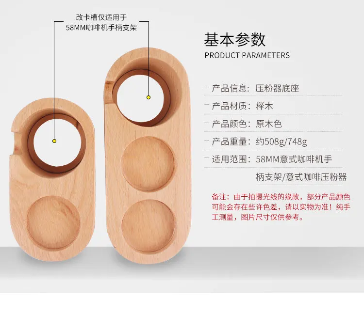 58 мм держатель для вскрытия кофе бариста кофе эспрессо подделка для дома аксессуары для кофеС дизайном слота, слот для карты кофейной ручки настроен, прессование порошка стабильно и тряска уменьшается, и устройство для прессования порошка можно разместить рядом для легкого доступа.Нескользящая подкладка для ног. В нижней части основания есть четыре противоскользящие подушечки для ног, которые могут эффективно предотвращать скольжение и истирание рабочего стола, а пресс-порошок более стабильный и экономичный.Материал бука, натуральный материал, здоровый и успокаивающий, уникальная текстура древесины, выглядит более красиво.Обработка слоя лака, обработка поверхности лака, общая круглая и гладкая, держащая в руке, Отличное ощущение.