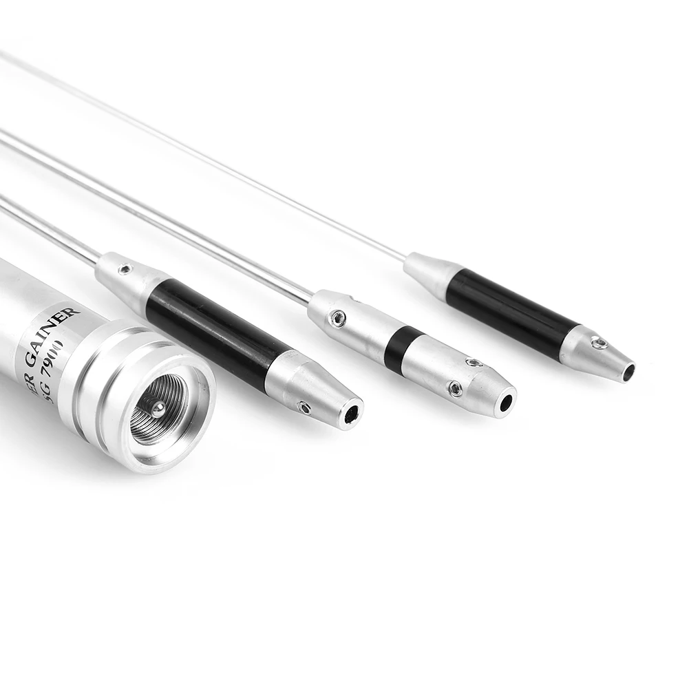 SG-7900 двухдиапазонная антенна для мобильного телефона 144/430MHz VHF Любительская рация с отворотом антенна с УВЧ штырьковый разъемХарактеристика:Гарантия качества, более сильный сигнал.Спецификация:Модель: SG-7900Частота: 144/430 МГцКоэффициент усиления: 5.0dBi (144 МГц)/7.6dBi (430 МГц)Мощность: 150 ВтСопротивление: 50 ОмДлина: 1,53 метровВес: 600 гРазъем: UHF MПримечание:1. Возможны незначительные отклонения в размере из-за ручного измерения, различных методов измерения и инструментов.2. Изображение может не отражать фактический цвет изделия из-за различных фотографирования светильник, угол и дисплей монитора.