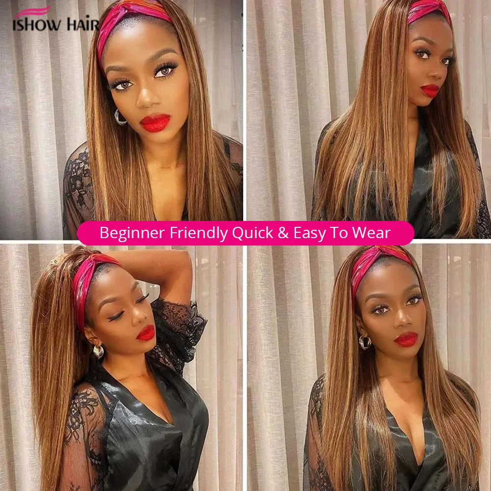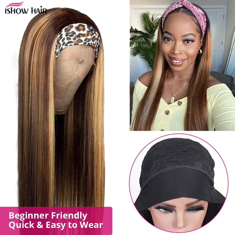 Парики Ishow из парик с головной повязкой натуральных волос для чер...