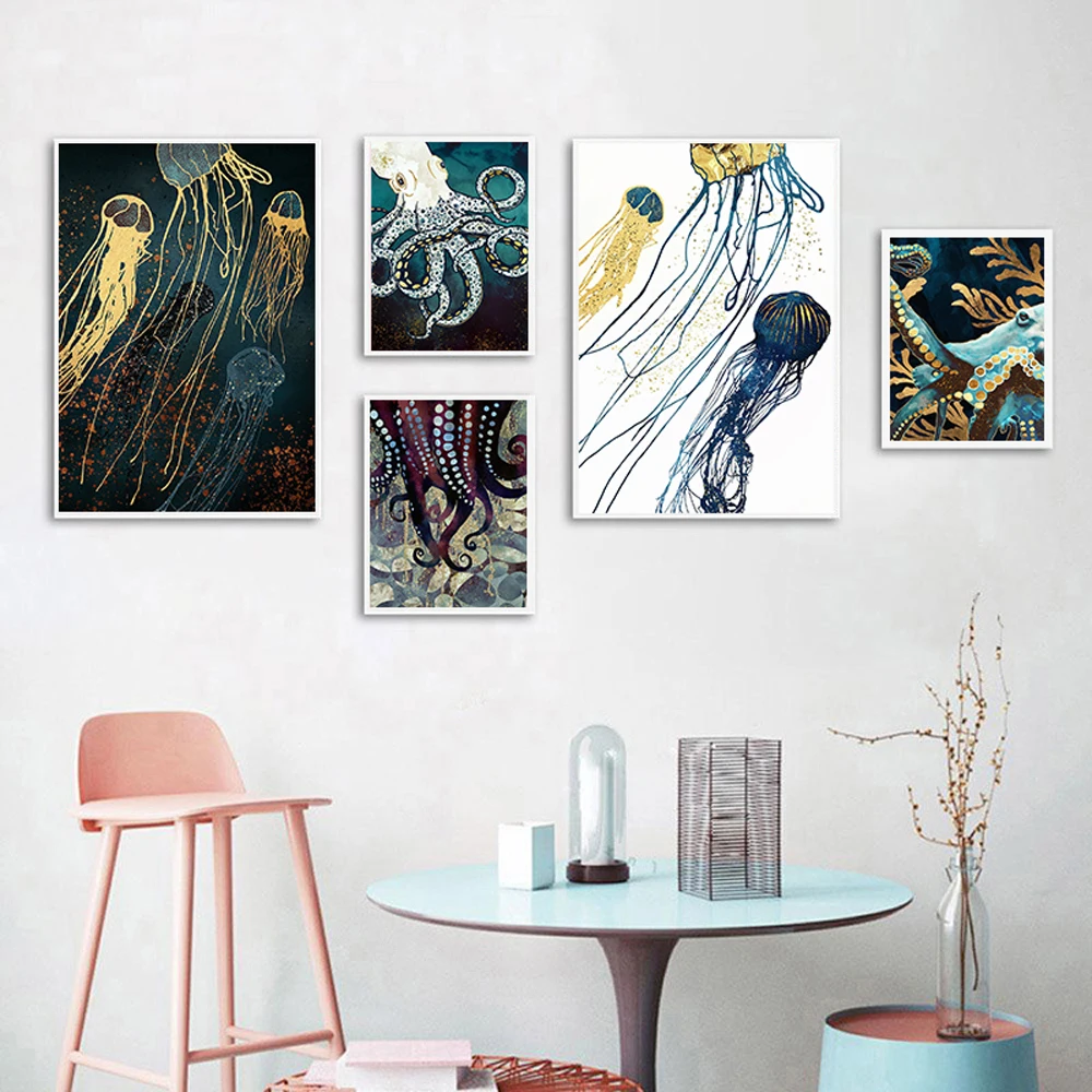 Медуза осьминог Кальмар абстракции Холст животных пейзаж плакаты настенные картины для гостиной Декор без рамки