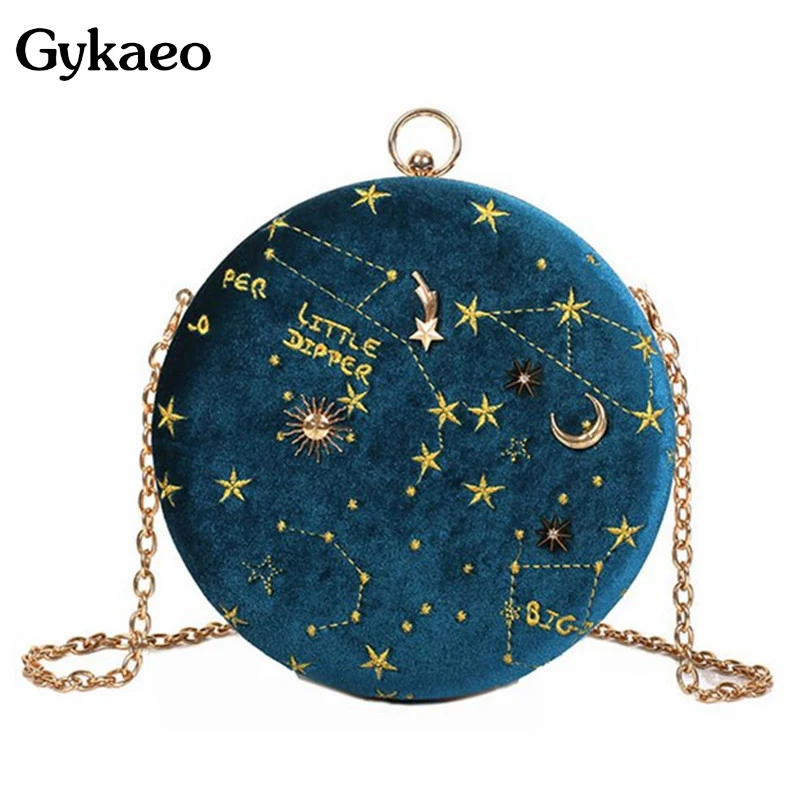 Женская сумка через плечо, круглая, с цепочкой и звёздным небом