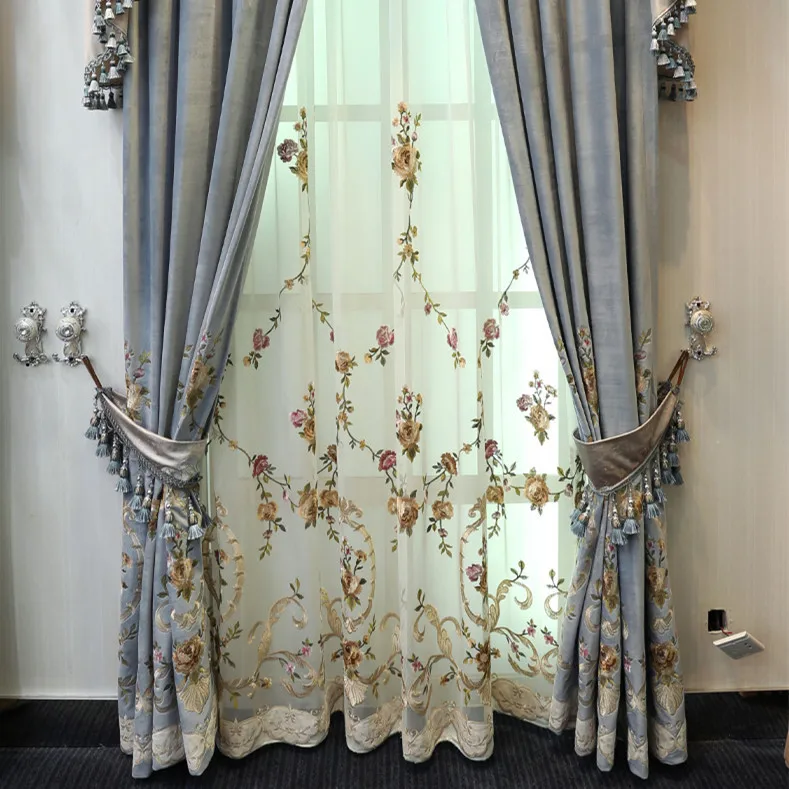 Роскошные декоративные цветочные шторы в европейском стиле для гостиной спальни бархатные вышитые затемняющие шторы ДЕКОРАТИВНЫЙ Тюль на заказ