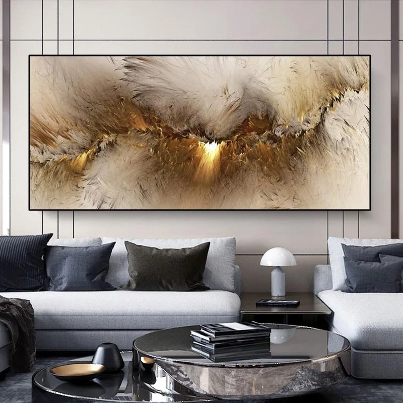 Абстрактная масляная живопись, серые желтые облака, Фреска для гостиной, украшение, холст, современное искусство, плакат и печать
