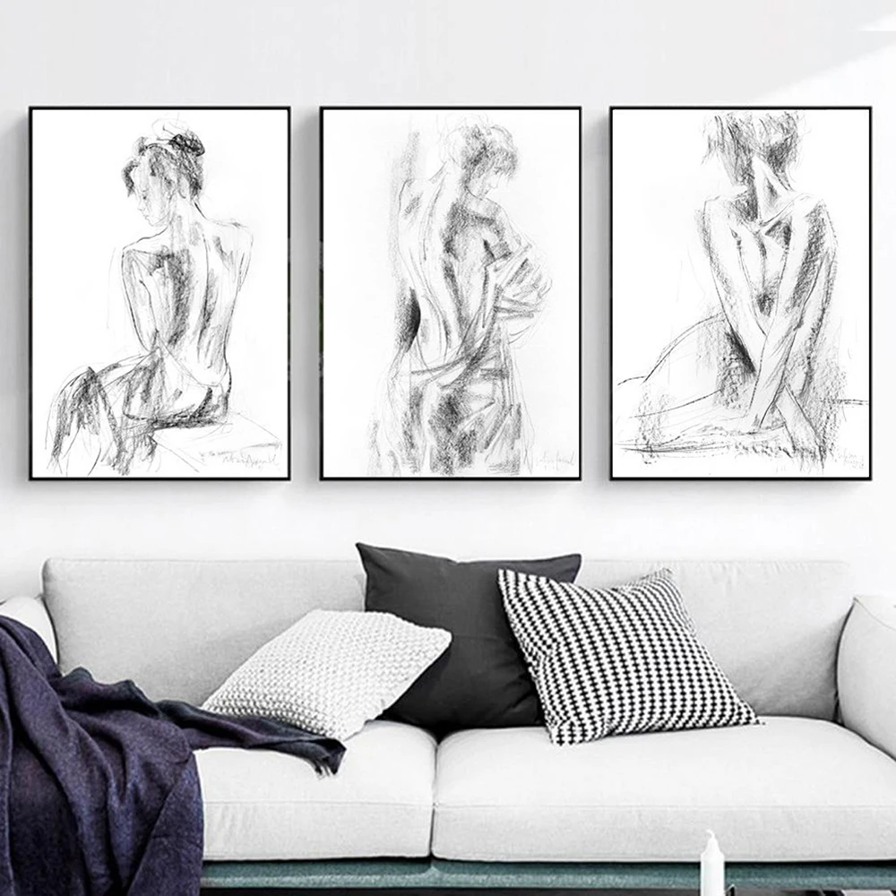 Абстрактная Сексуальная женская живопись на холсте черная белая Обнаженная эскизная женщина Плакаты Hd печать спальня домашний декор Настенная картина