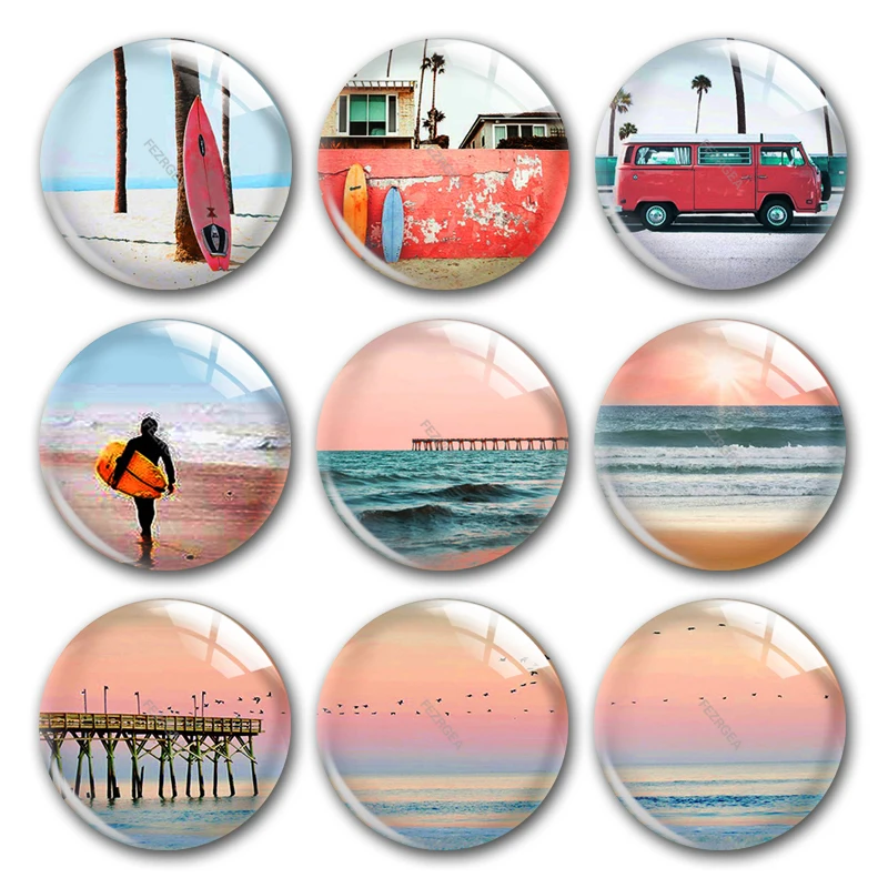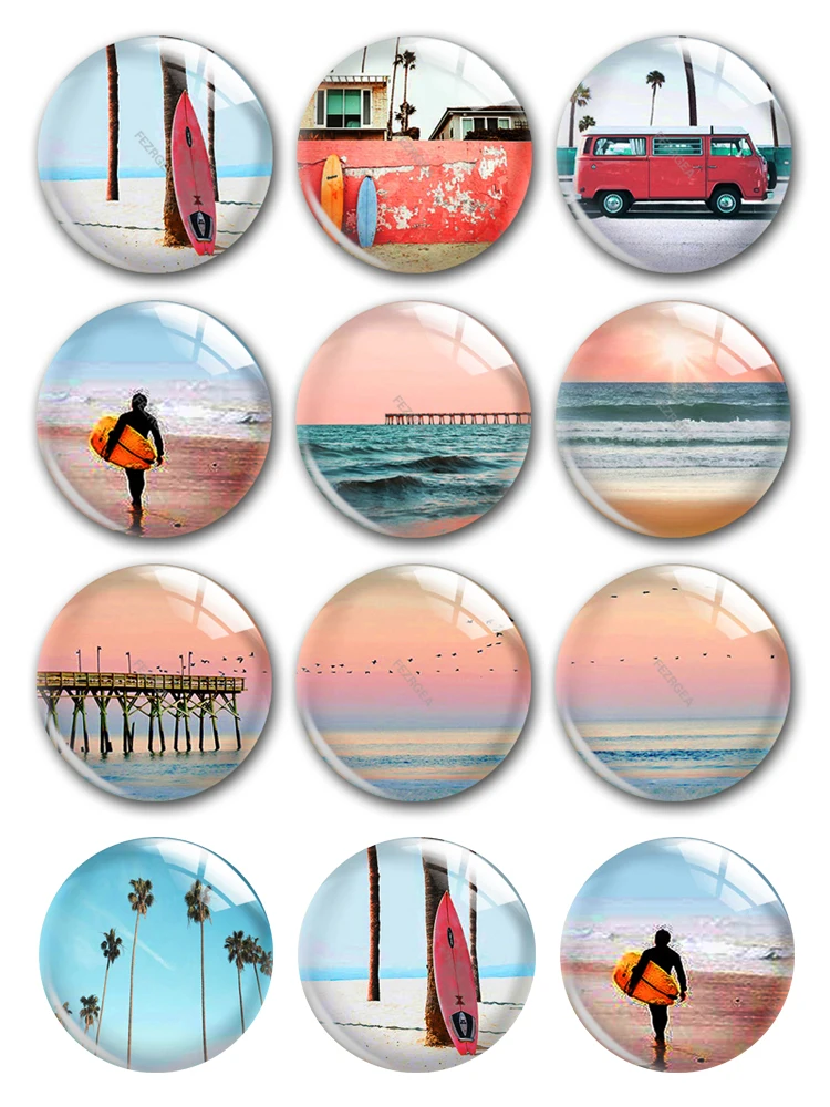 Летние круглые стеклянные кабошоны ручной работы с узорами в стиле ...